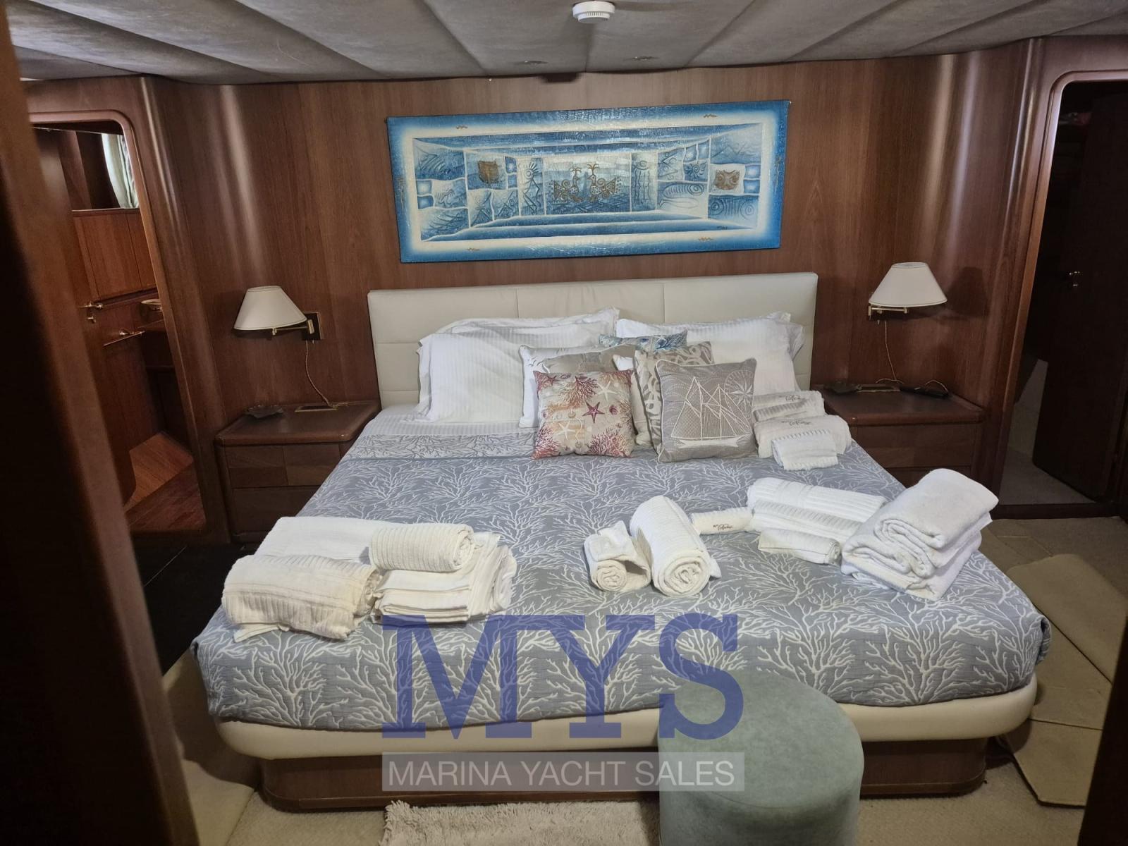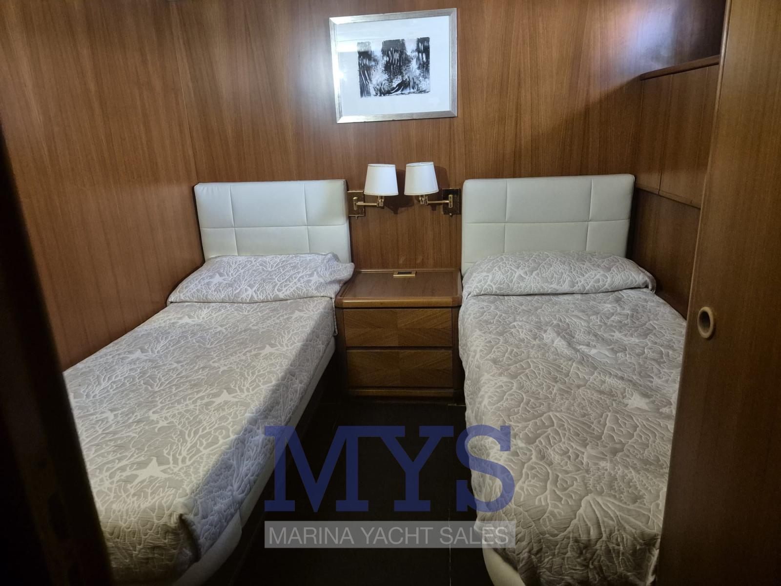 La zona notte si compone di 4 cabine, 2 matrimoniali e due doppie. L’armatoriale a tutto baglio poppavia con ampi spazi per il massimo confort, dotata di servizi en suite, con doppio lavabo e doccia, spaziosa cabina armadio completa di cassaforte, zona scrivania, climatizzazione autonoma, TV LED-Ultra HD, stereo, impianto citofonico interno nave (predisposizione), cabina VIP a proravia sempre a tutto baglio e dotata di ogni confort, servizi en suite, ampia cabina armadio completa di cassaforte, climatizzazione autonoma, TV LED-Ultra HD, stereo, impianto citofonico interno nave ( predisposizione), due cabine doppie con comodi letti in piano, ciascuna con servizi completi en suite, climatizzazione autonoma, impianto citofonico interno (predisposizione), inoltre lo yacht è dotato di sanitizzatore-ionizzatore d’aria per la massima cura ed igiene degli ambienti interni.