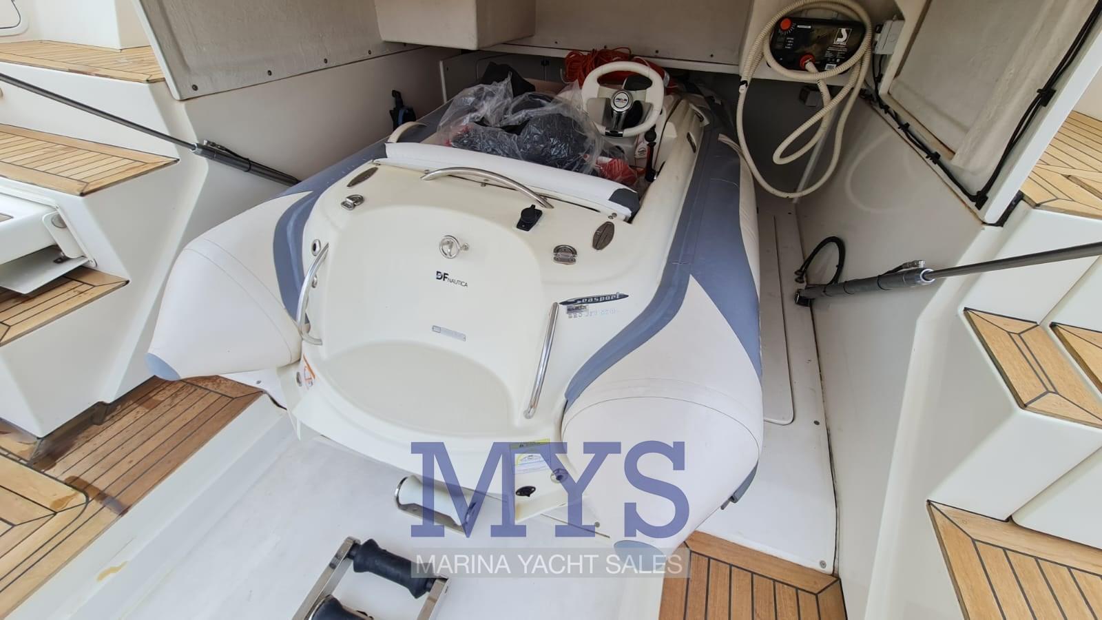 Allarme motore, Allarme sentina, Autoclave, Colorazione speciale (Scafo blù), Doccia esterna, Faro orientabile, Flap idraulici, Passerella (Idraulica), Piattaforma, Pompa di sentina automatica, Porta ingresso, Pozzetto Teak, Presa 220V banchina, Raddrizzatore, Salpa Ancore Elettrico, Scaletta da bagno, Tavolo pozzetto, Tromba, Winch tonneggio di poppa.