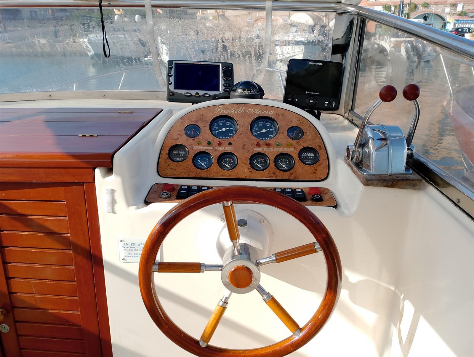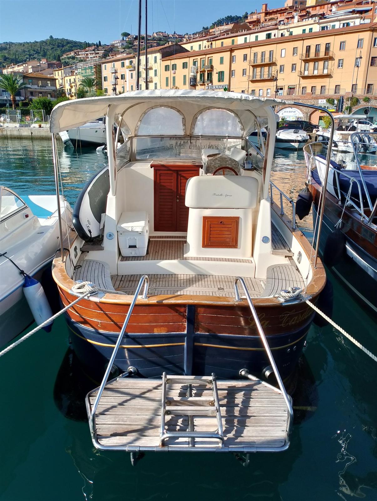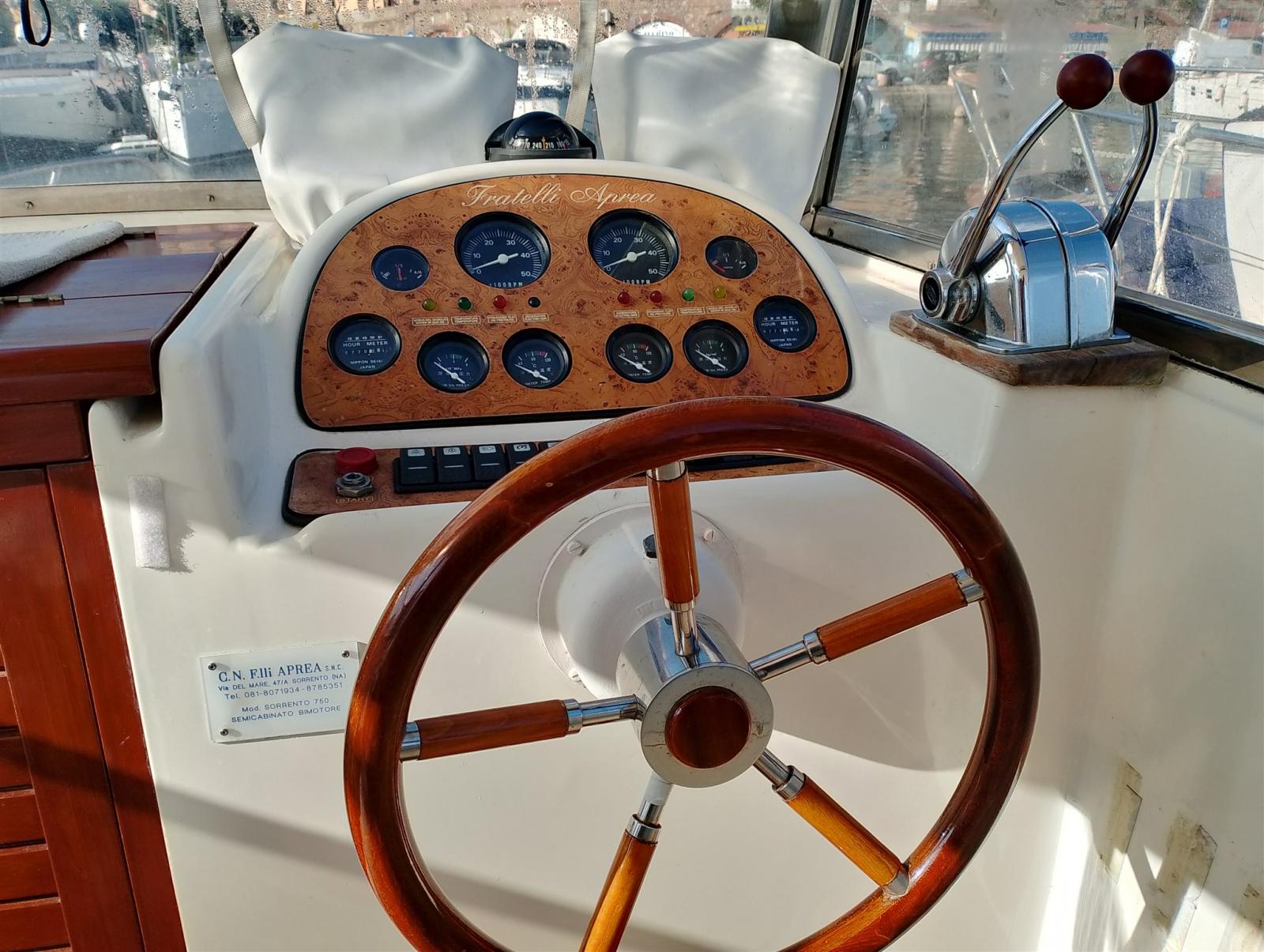 Ora rimessata a terra. Ha fatto il tagliando ai motori sostituiti gli zinchi , sostituito l’invertitore, dato la vernice alla falchetta e al fascione di legno inferiore, nuovi cuscini di prua . Deve solo fare l’antivegetativa prima di andare a mare