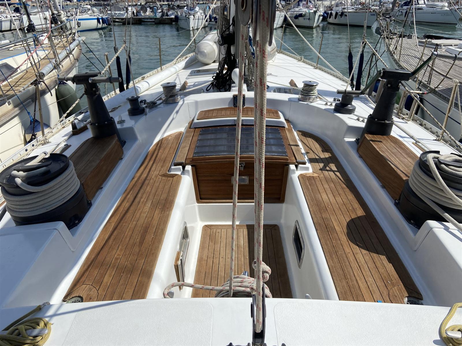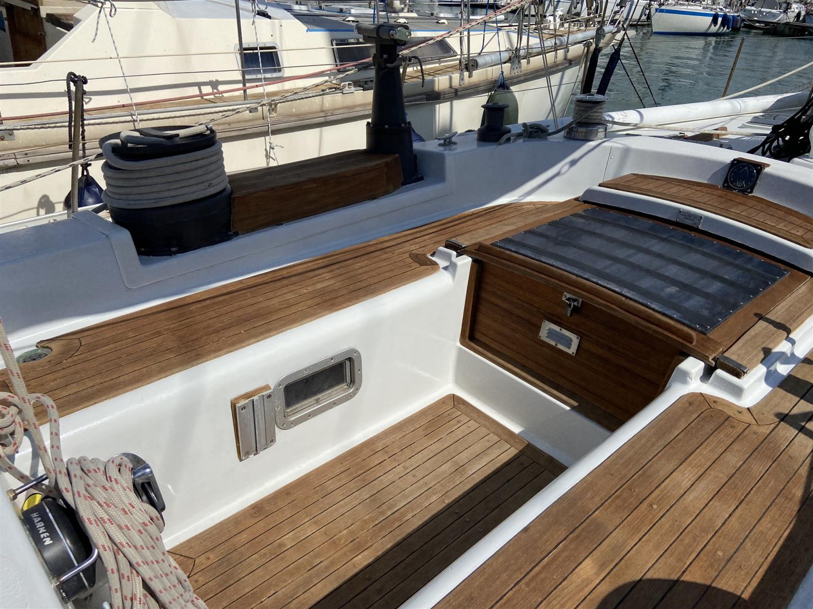 Allarme sentina, Ancora (1 con 80 m catena del 12 + ancora di rispetto), Asse di rispetto, Autoclave, 5 Batterie (2 motore, 2 servizi 1 strumenti), Passerella (inox), 2 Pompa di sentina elettrica, 2 Pompa di sentina manuale, Pozzetto Teak, Presa 220V banchina, Salpa Ancore Elettrico (Lofrans 1200), Sartiame spiroidale, Scaletta da bagno, Supporto motore fuoribordo, Tavolo pozzetto (Con luce sul boma), Tender (Arimar 3,20), 10 Winch (Barient e 2 Coffee Grinder Barbarossa).