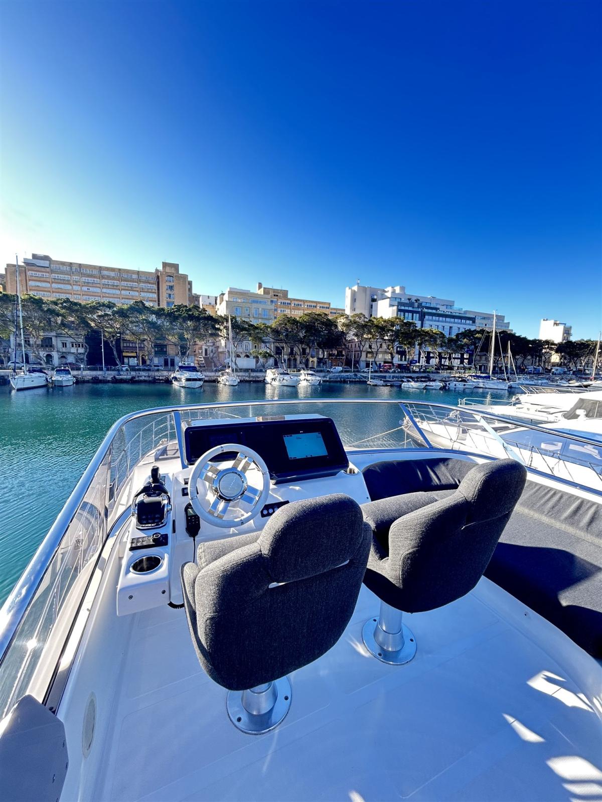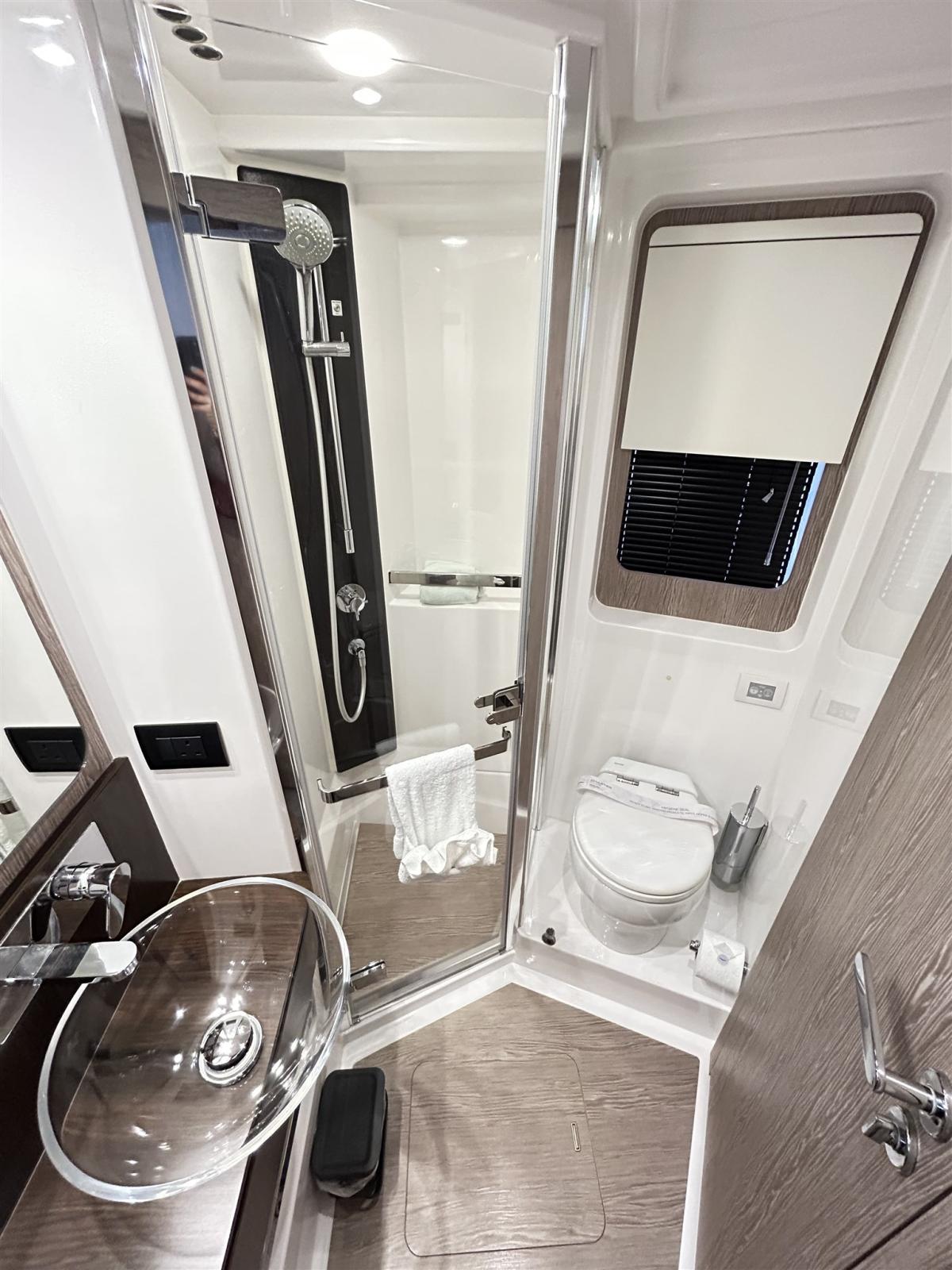 Allarme motore, Allarme sentina, Autoclave, Auto-Trim, Camminamenti laterali in teak, Doccia esterna, Impianto antincendio, Jet Boat, Lavaggio catena, Luci di cortesia, Luci subacquee, Passerella, Piattaforma, Pompa di sentina automatica, Pompa di sentina manuale, Pozzetto Teak, Salpa Ancore Elettrico, Scaletta da bagno, Tavolo pozzetto, Tender, Tromba, Winch tonneggio di prua.