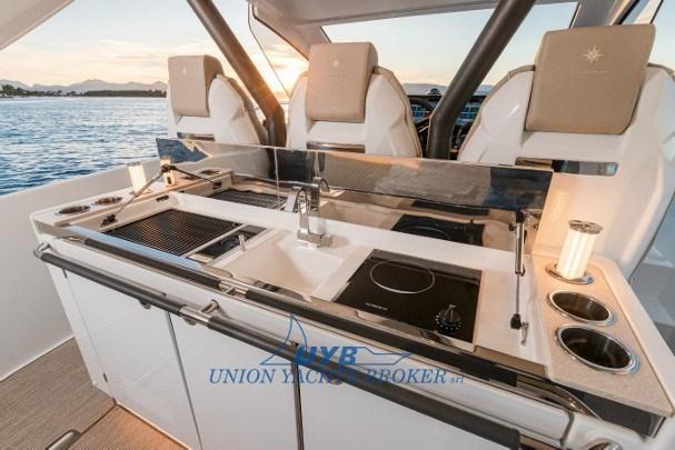 Allarme motore, Allarme sentina, Alternatore, Apertura Vano Motore Elettrica, Asse di rispetto, Autoclave, Camminamenti laterali in teak, Cavo corrente di banchina, Colorazione speciale (VERNICE SCAFO METALLIZZATA PREMIUM), Doccia esterna, Flap elettrici, Lavandino nel Pozzetto, Luci di cortesia, Luci subacquee, Monitor batteria, Passerella, Piattaforma, Pompa di sentina automatica, Pompa di sentina manuale, Ponte in teak, Porta ingresso, Pozzetto Teak, Presa 220V banchina, Presa acqua banchina, Raddrizzatore, Salpa Ancore Elettrico, Scaletta da bagno, Tavolo pozzetto, Tromba.