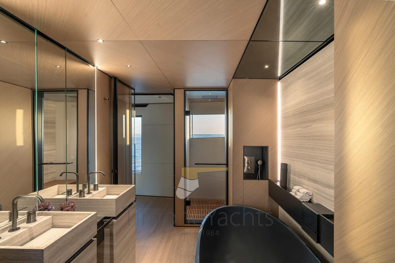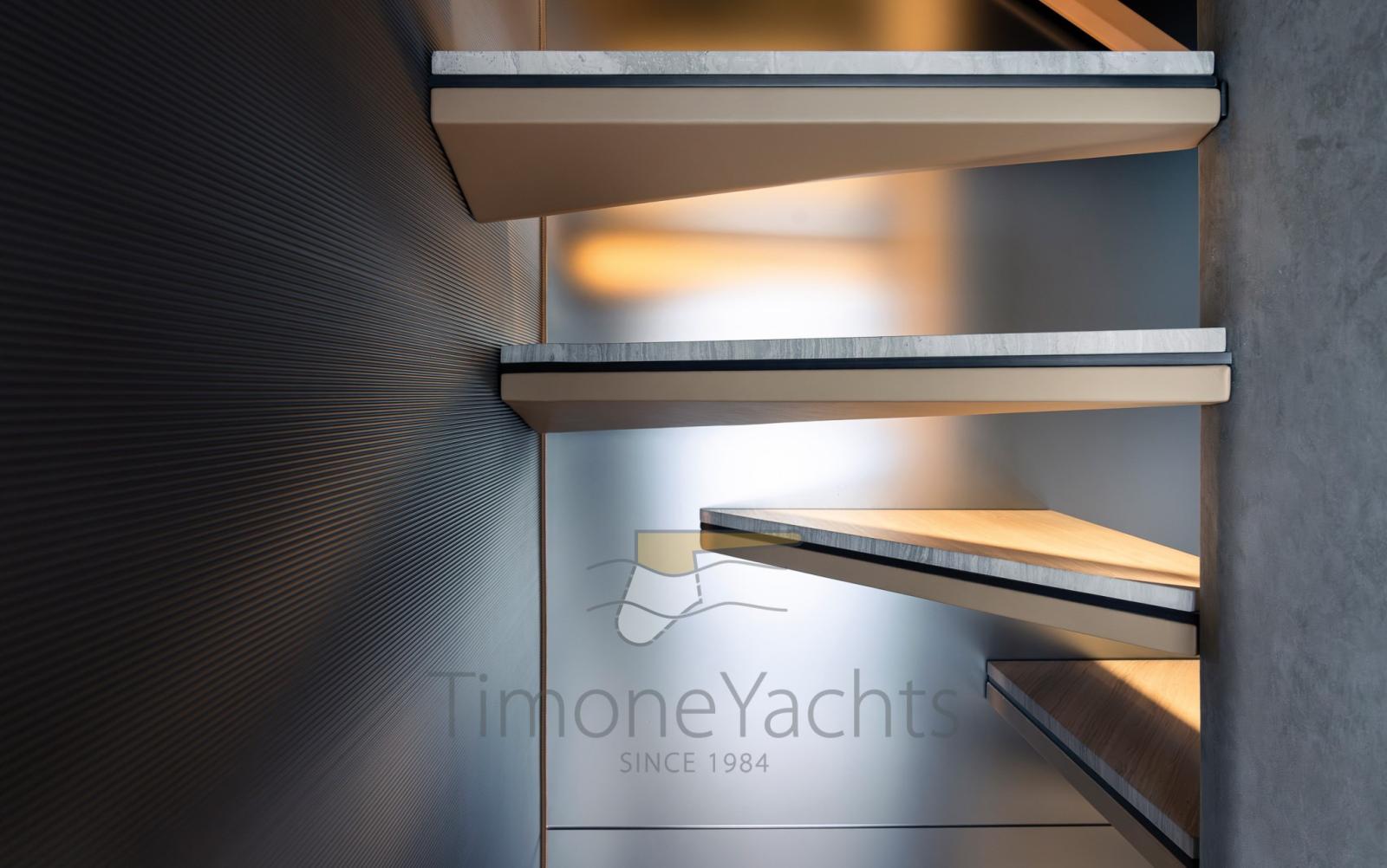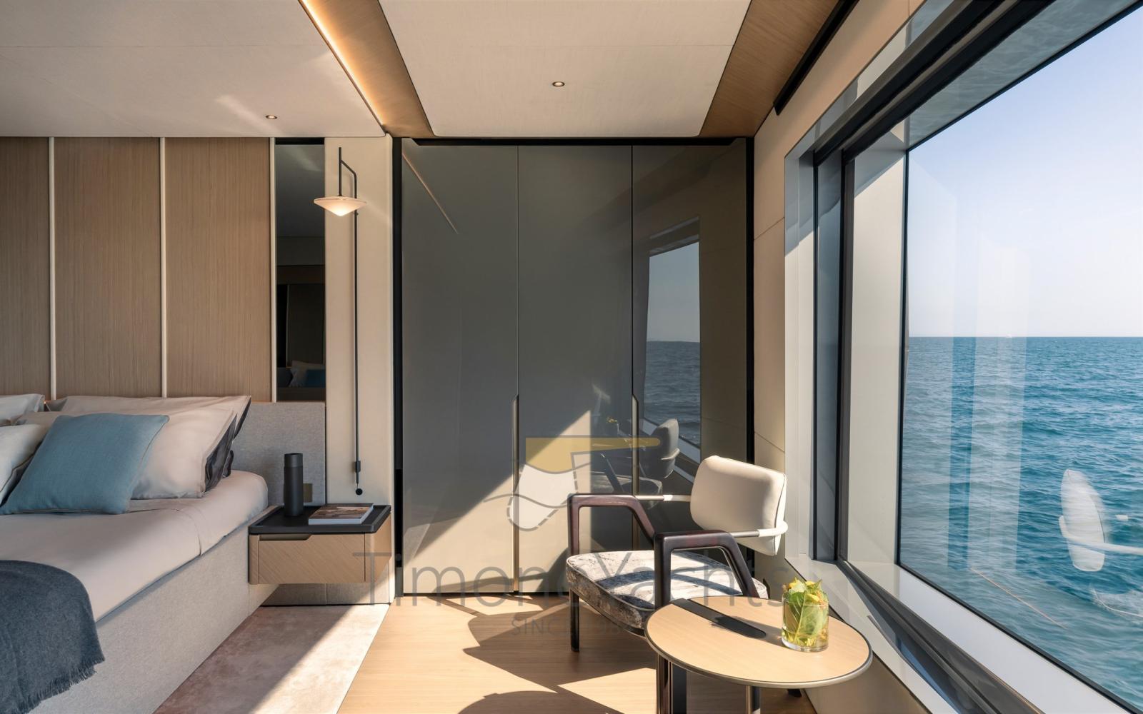Insieme, le quattro terrazze totali a cascata sul mare creano un effetto fortemente dinamico e immersivo, rivoluzionando la tradizionale suddivisione degli spazi a bordo in modo contemporaneo ma assolutamente inaspettato.
