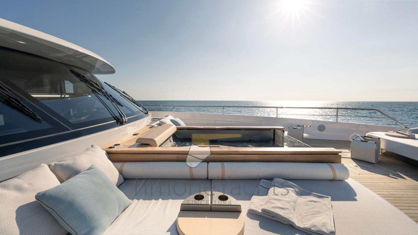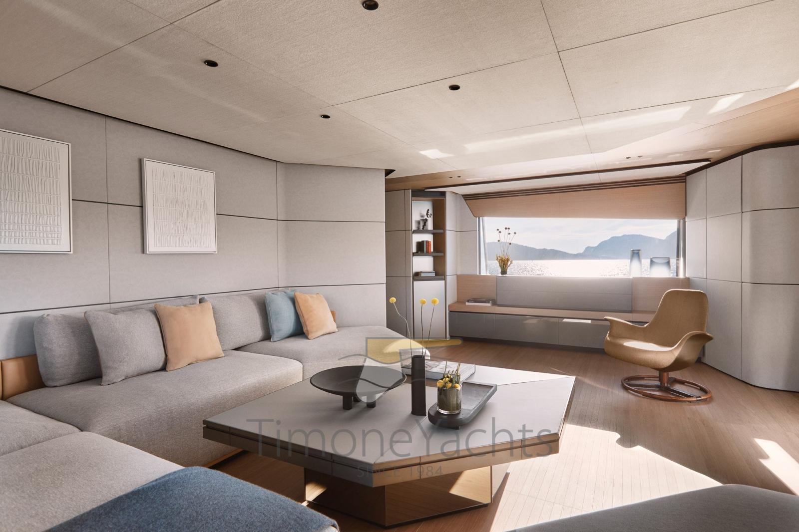 Incastonato tra la Sea View Terrace e l'ingresso del salone, il main deck offre un altro spazio particolarmente sorprendente: il raffinato e riservato patio privato. Un'estensione dell'ambiente di vita interno e una zona esterna protetta, questo ambiente intimo e inaspettato è dedicato alla convivialità per pranzi o cene informali o ai momenti di relax.