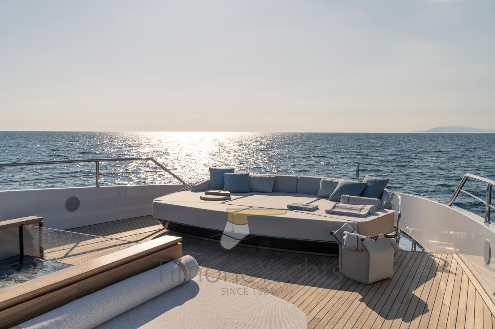 La Sea View Terrace, un vero e proprio palcoscenico sul mare, nasce per ammirare il panorama da un punto di vista unico e privilegiato, sospesi sullo spettacolo dell'acqua. Allo stesso tempo, il sundeck superiore è il luogo ideale per il relax e un bagno di sole, mentre il sottostante upper deck ospita la zona conviviale principale esterna. Ultimo ma non meno importante, l'area beach a poppa: il trait d'union ideale tra gli ospiti a bordo e la natura circostante.