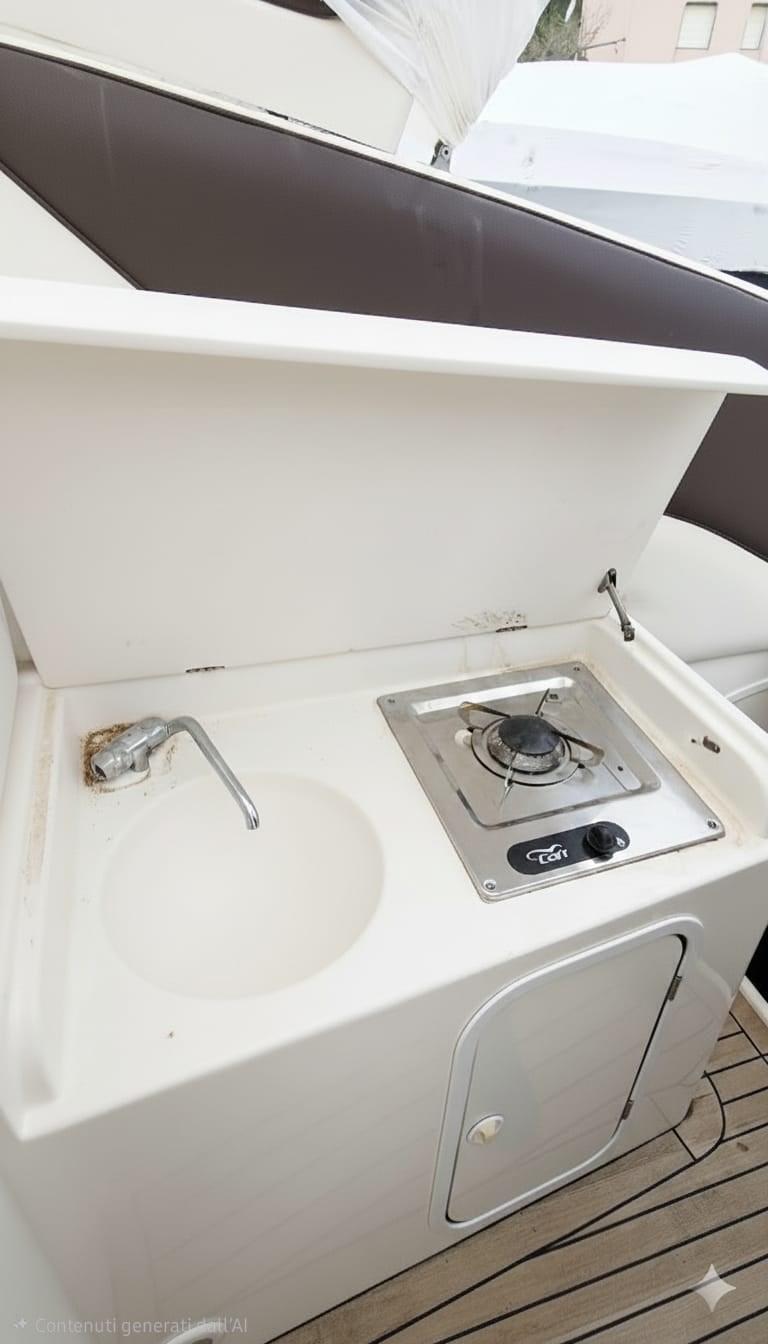 Allarme motore, Apertura Vano Motore Elettrica, Autoclave, 4 Batterie (2025), Doccia esterna, Flap elettrici, Flap idraulici (N°2), Parabordi, Piattaforma, Pompa di sentina automatica, Pozzetto Teak (2023), Presa 220V banchina, Raddrizzatore, Rollbar, Salpa Ancore Elettrico, Scaletta da bagno, Tavolo pozzetto (con piede telescopico), Tromba.