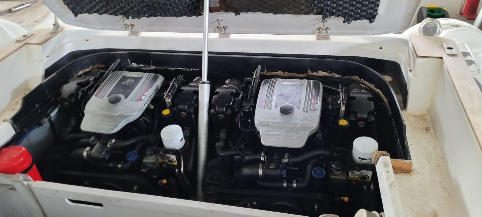 Teak -cuscineria in ordine- cuscineria cabina nuova - Tendalino acciaio arco a scomparsa + tendalino paletti -220v - Manutenzione motori ordinarie straordinaria - riser collettori - cuffie olio quick silver