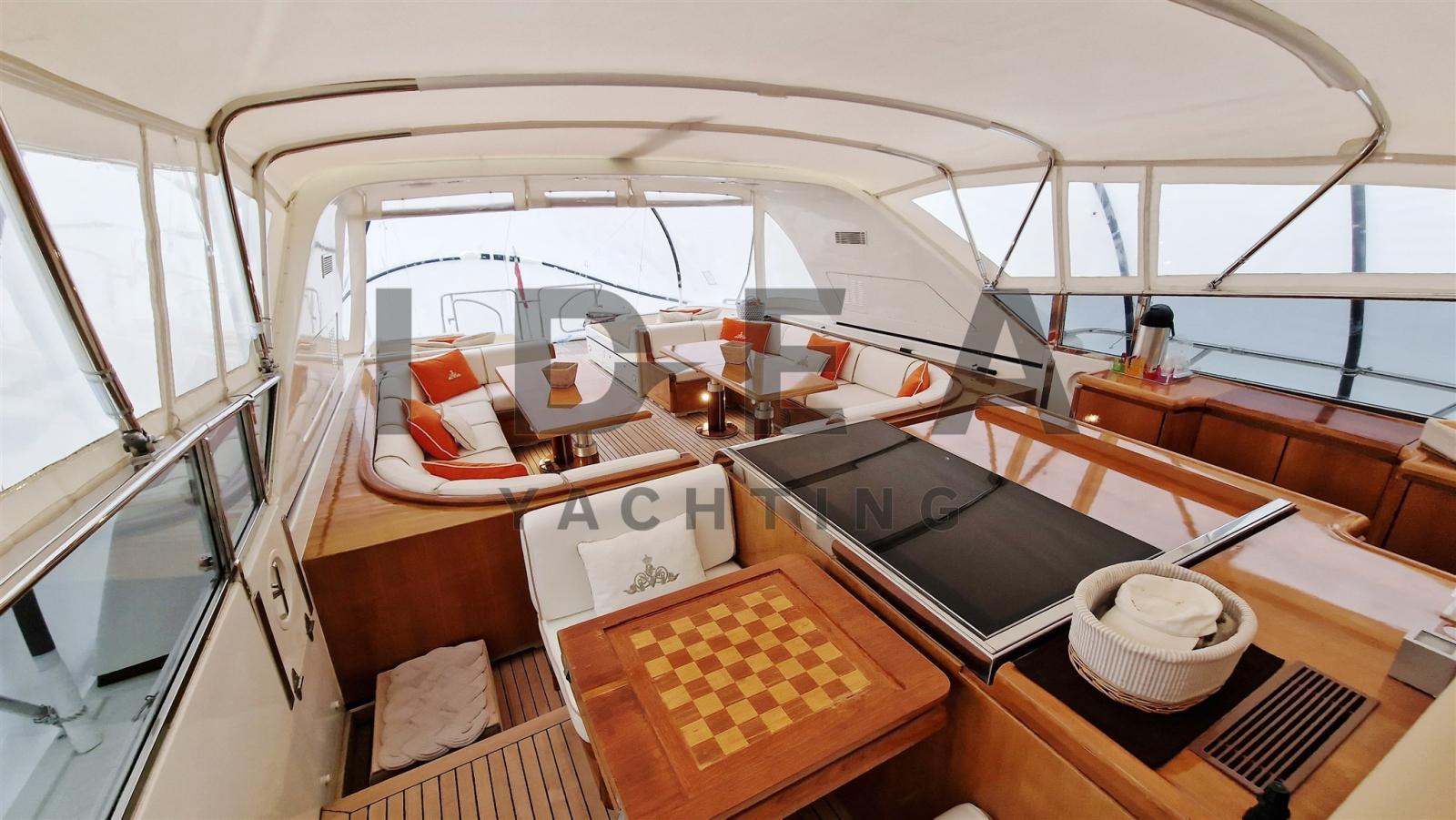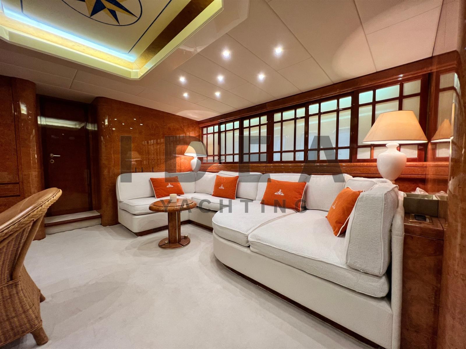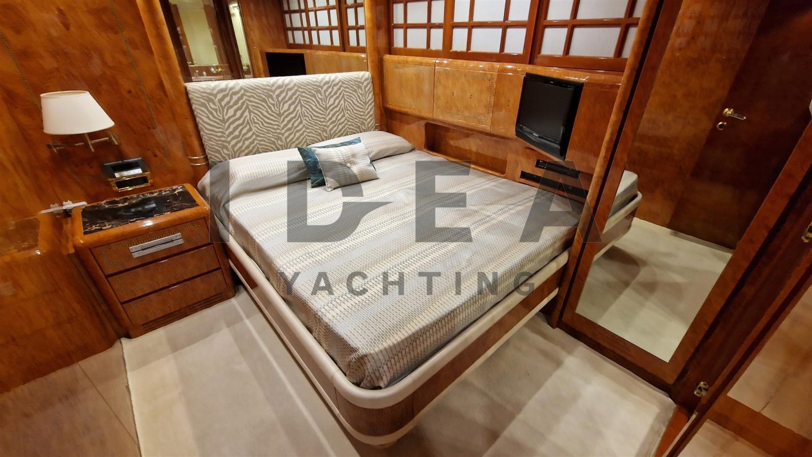 Allarme fumo/gas, Allarme motore, Allarme sentina, Auto Dynamic Trim Interceptor, Autoclave, Doccia esterna, Faro orientabile, Garage per tender, Gruette per tender, Impianto antincendio, Indicatori Flaps, Lavandino nel Pozzetto, Luci di cortesia, Passerella (Hydraulic), Piattaforma, Pompa di sentina automatica, Pompa di sentina manuale, Porta laterale, Pozzetto Teak, Presa 220V banchina, Presa acqua banchina, Raddrizzatore, Rollbar, Salpa Ancore Elettrico, Scaletta da bagno, Tavolo pozzetto, Tromba, 2 Winch tonneggio di poppa, Winch tonneggio di prua.