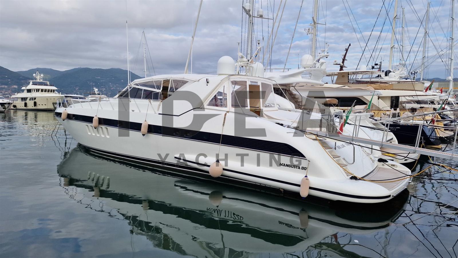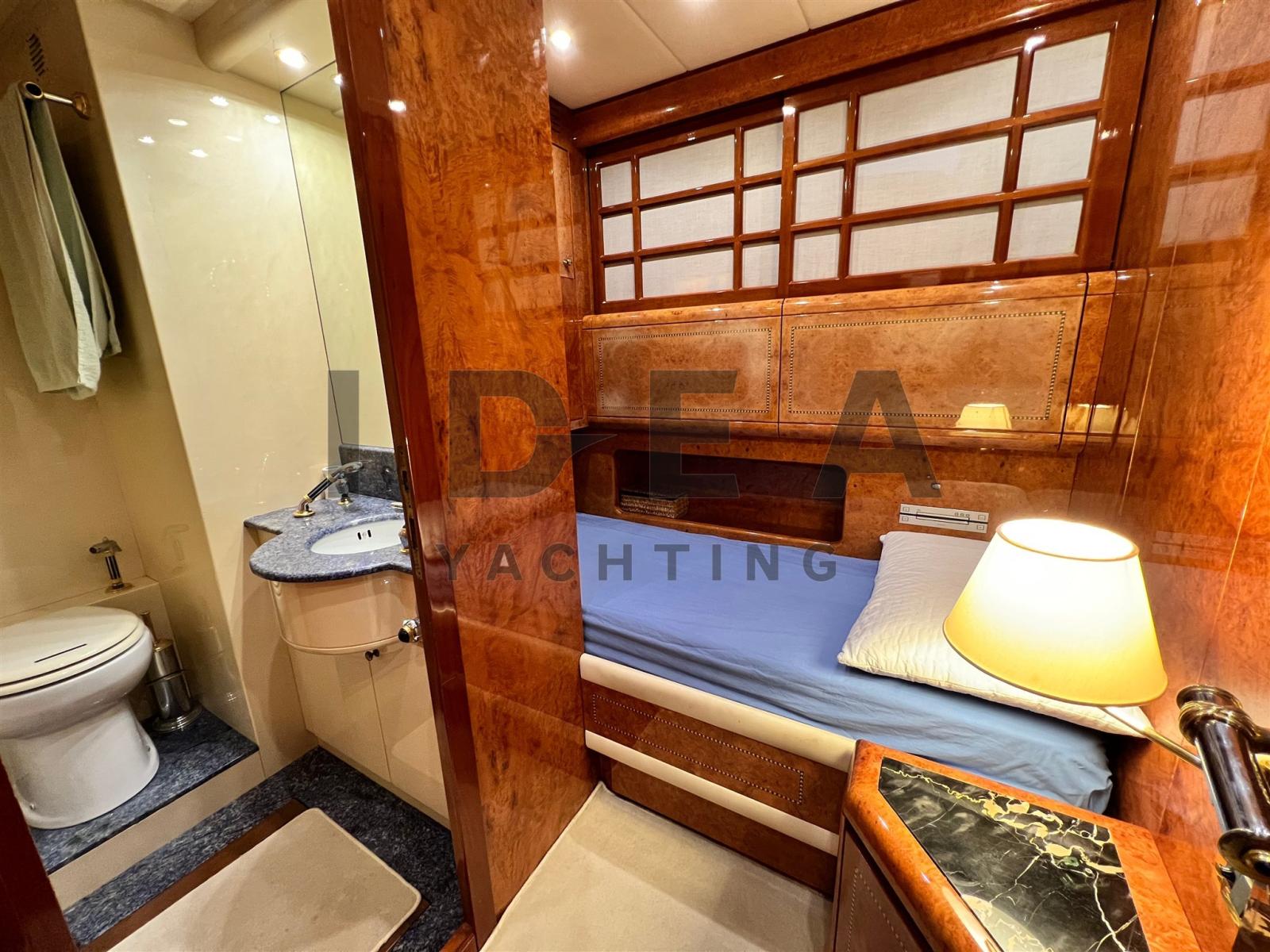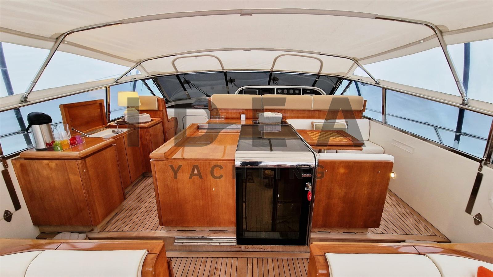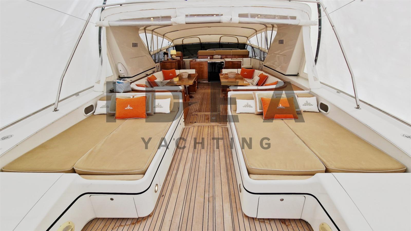Allarme fumo/gas, Allarme motore, Allarme sentina, Auto Dynamic Trim Interceptor, Autoclave, Doccia esterna, Faro orientabile, Garage per tender, Gruette per tender, Impianto antincendio, Indicatori Flaps, Lavandino nel Pozzetto, Luci di cortesia, Passerella (Hydraulic), Piattaforma, Pompa di sentina automatica, Pompa di sentina manuale, Porta laterale, Pozzetto Teak, Presa 220V banchina, Presa acqua banchina, Raddrizzatore, Rollbar, Salpa Ancore Elettrico, Scaletta da bagno, Tavolo pozzetto, Tromba, 2 Winch tonneggio di poppa, Winch tonneggio di prua.