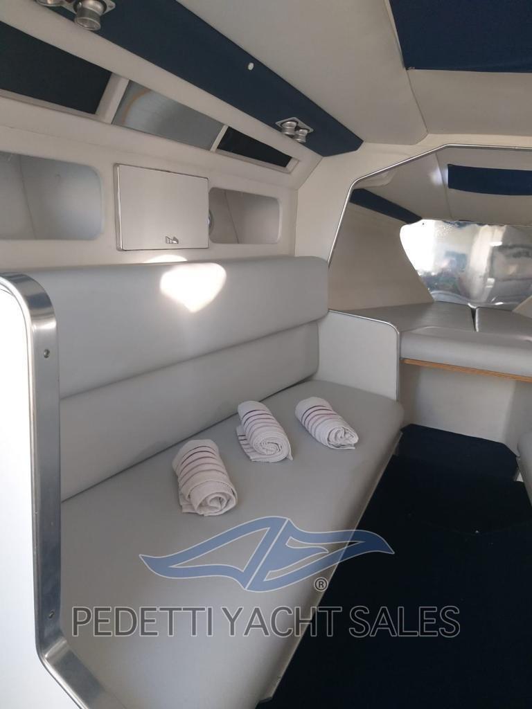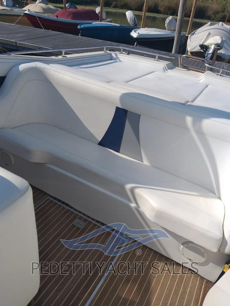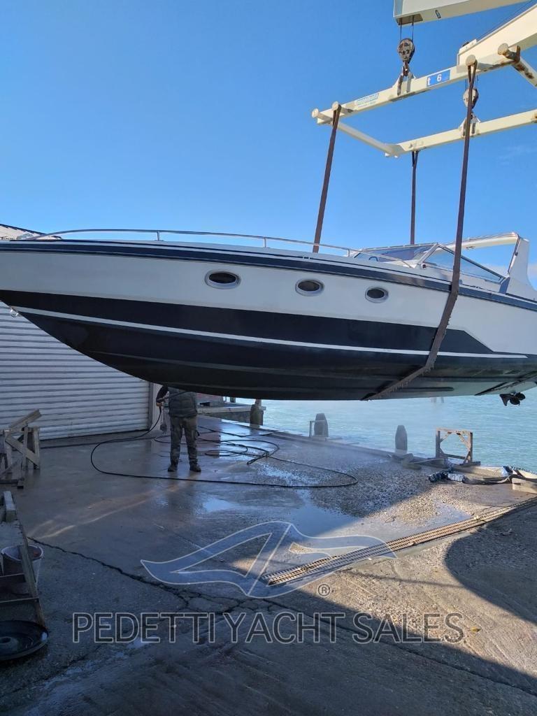 Barca pronta alla BOA. Glastron LARAYA 1100 ottime condizioni con 2 Volvo Penta da 200 cv cadauno - motori tagliandati, motorini di avviamento nuovi, cinghie nuove, batterie nuove, barca pronta - cantiere americano tra i primi costruttori in fibra di vetro in due pezzi senza uso di legno. Venne fondata in Texas nel 1956 e acquistata dalla Genmar Holdings negli anni novanta, con la produzione spostata nel Minnesota. I motoscafi prodotti dalla Glastron vennero usati per alcune scene del film Agente 007 - Vivi e lascia morire e Moonraker - Operazione spazio. Il motoscafo utilizzato nella serie televisiva di Batman degli anni sessanta era stato costruito dalla Glastron.