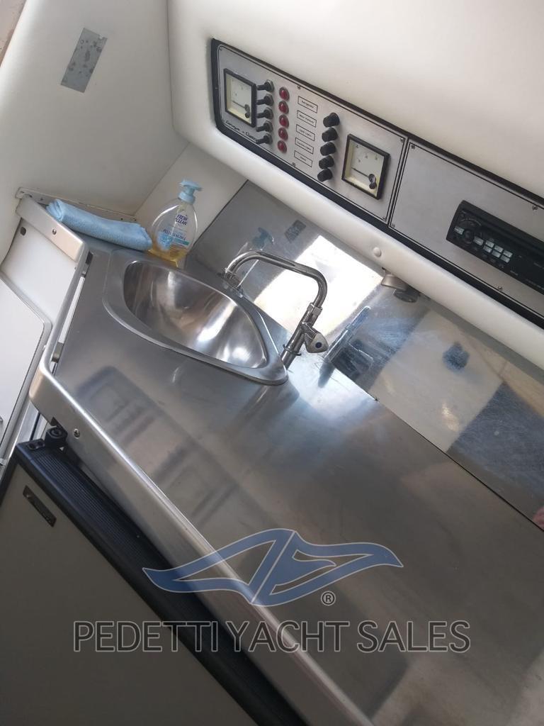 Allarme motore, Allarme sentina, Autoclave, Doccia esterna, Impianto antincendio, Piattaforma, Pompa di sentina automatica, Presa 220V banchina, Salpa Ancore Elettrico, Tavolo pozzetto.
