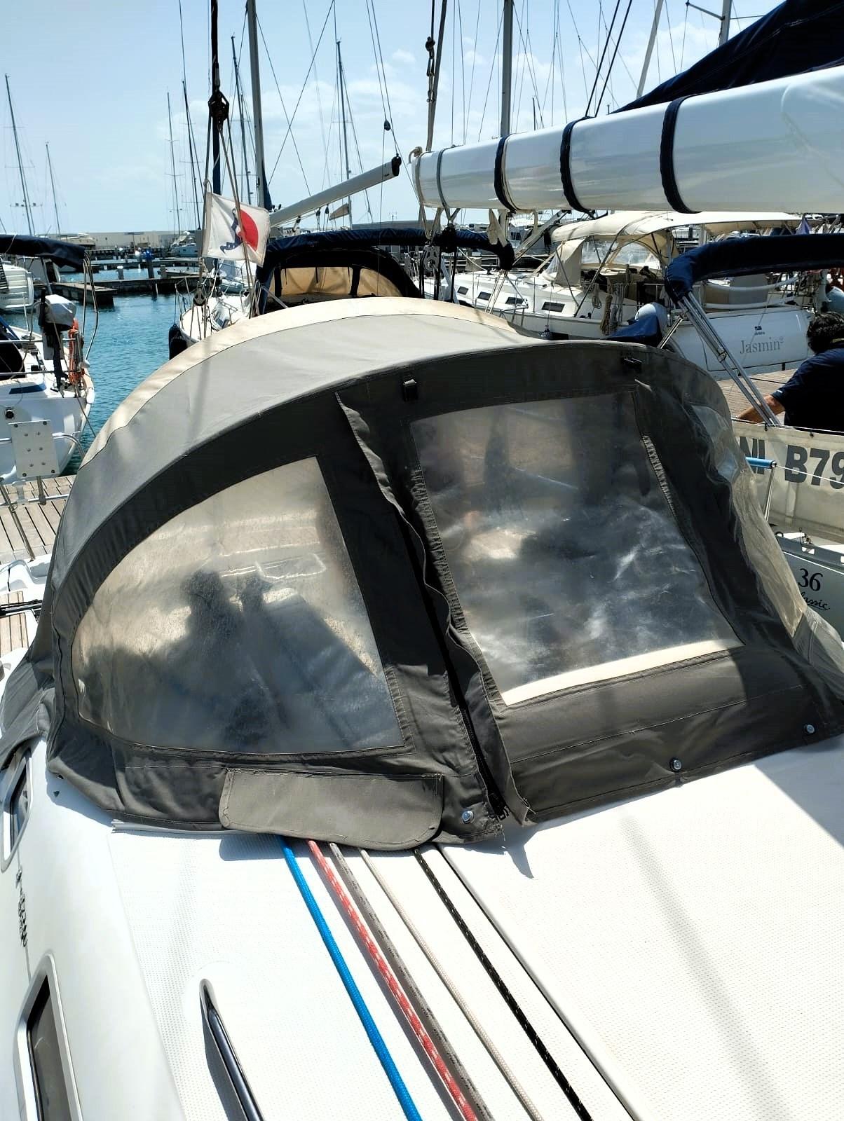 Allarme motore, Autoclave, Autogonfiabile (10pp), 2 Batterie, Doccia esterna, Motore ausiliario, Pompa di sentina manuale, Pozzetto Teak, Presa 220V banchina, Presa acqua banchina, Ripetitore strumentazione, Salpa Ancore Elettrico, Sartiame in tondino (rifatto nel 2018), Scaletta da bagno, Supporto motore fuoribordo, Tender, 4 Winch, Windex.