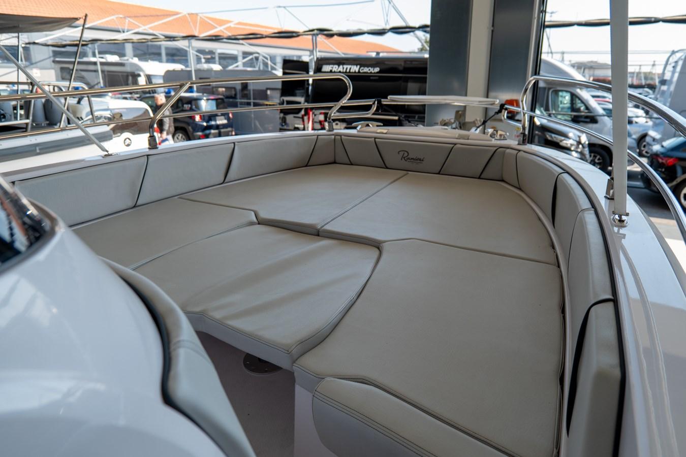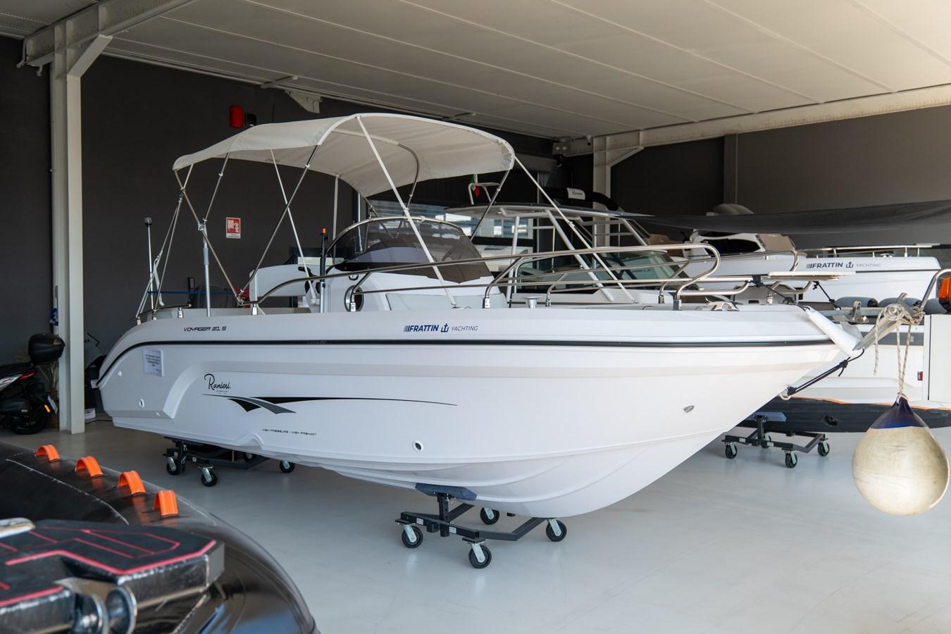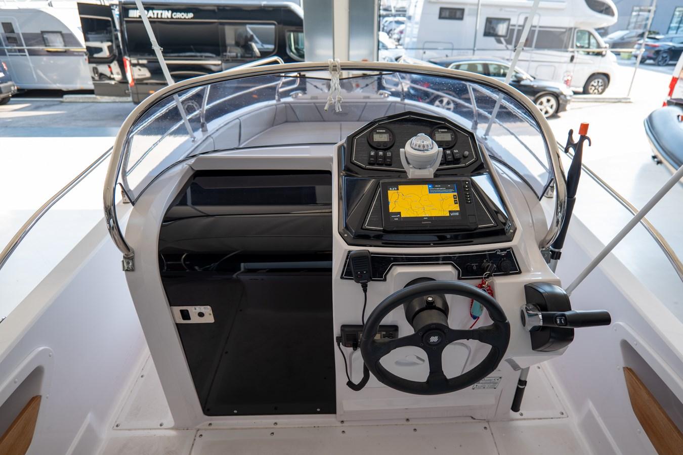 2 Oblò consolle - Aspiratore gas - Cuscini prendisole di prua - Indicatore livello carburante - Luci di navigazione - Mobile WC in rovere dark grey - Sedile guida con spalliera a ribalta - Pompa di sentina con comando automatico/manuale - Porta oggetti - Redan carena HIS - Scafo bianco - Scaletta di risalita - Serbatoio acqua - Serbatoio carburante in polietilene reticolato - Serie completa corrimano inox - Stacca batteria - Tappezzeria Esterna standard - Tasche portaoggetti - Timoneria meccanica completa - Tromba elettrica