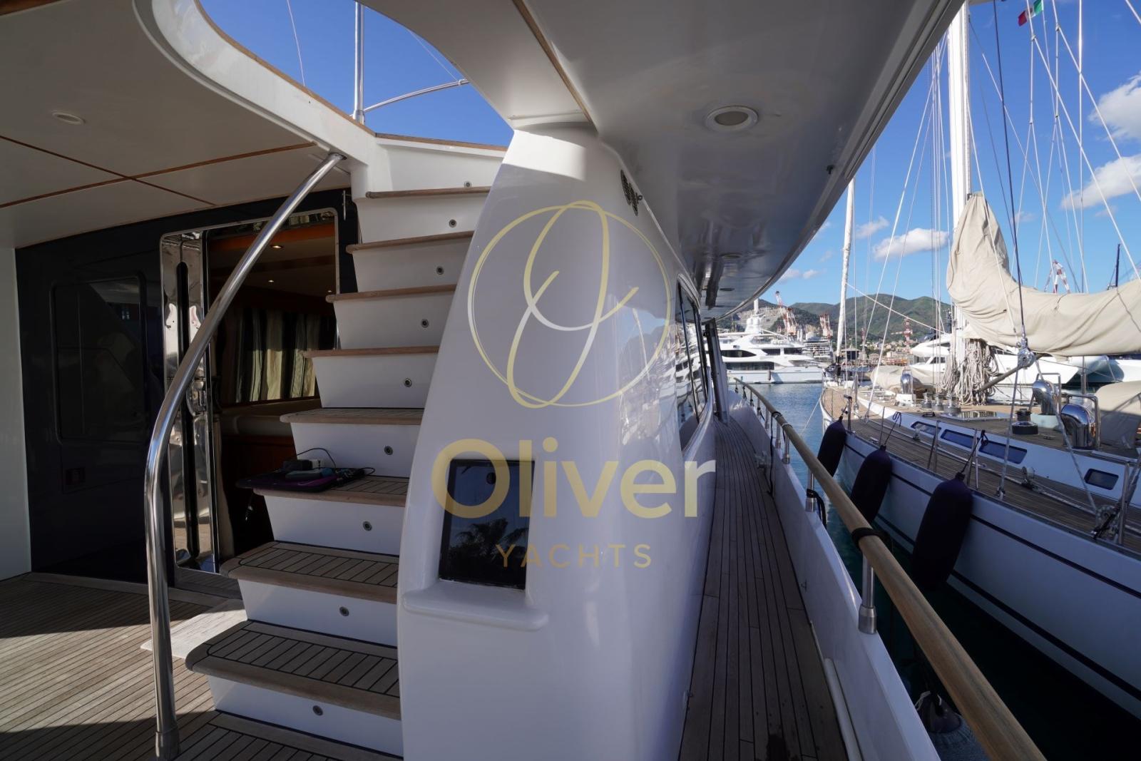 Allarme fumo/gas, Allarme motore, Allarme sentina, Autoclave, 2 Autogonfiabile, Auto-Trim, Bitte Abbattibili, Camminamenti laterali in teak, Doccia esterna, Doppia timoneria, Gruette, Gruette per tender, Impianto antincendio, Luci di cortesia, Passerella, Pompa di sentina automatica, Pompa di sentina manuale, Porta ingresso, Porta laterale, Pozzetto Teak, Presa 220V banchina, Presa acqua banchina, Ripetitore strumentazione, Salpa Ancore Idraulico, Scaletta da bagno, Selle per Tender, Sistema Depurazione acque nere, Tavolo pozzetto, Tender, Tromba, Tuga in teak, Winch tonneggio di poppa, Winch tonneggio di prua.
