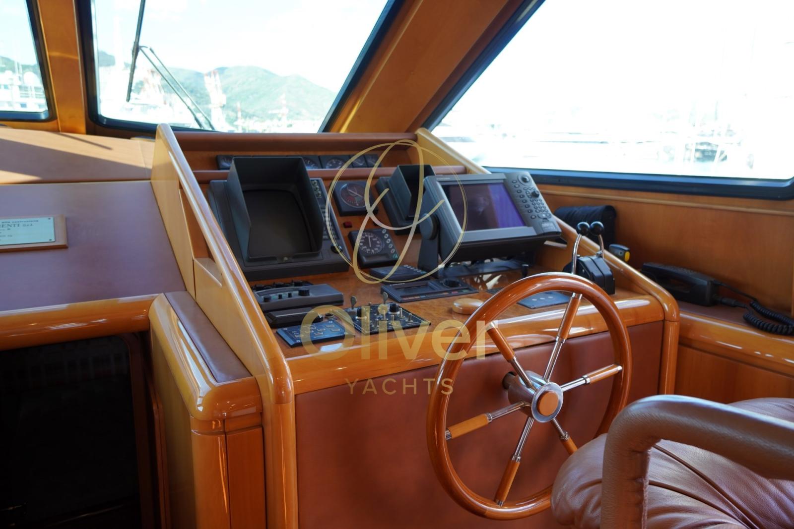 Angolo barra, Antenna radar, Comando motori elettronico, Computer di bordo, Contametri catena, Display, Interfaccia, Interfono, Plotter con antenna GPS, Sedile Copilota.