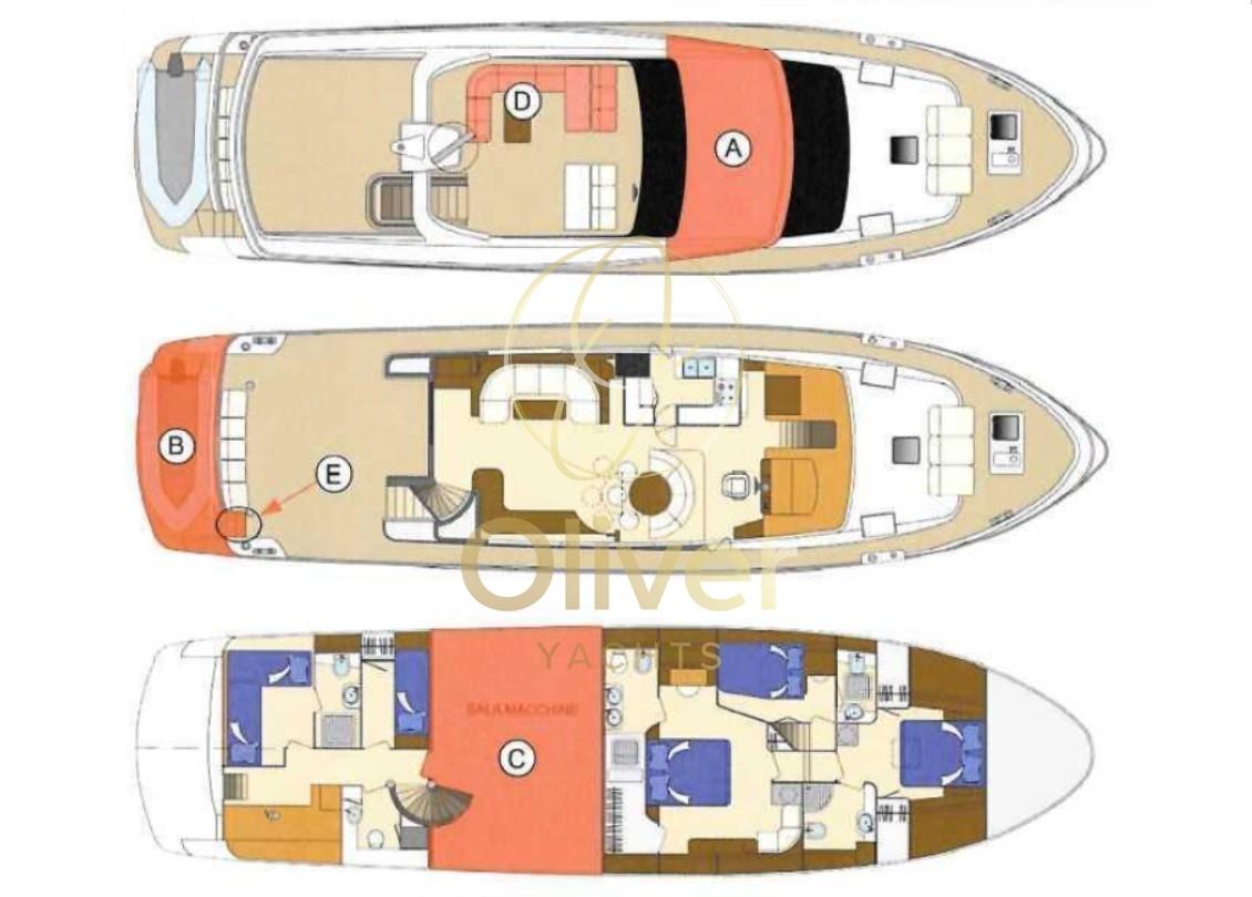• La collocazione della zona notte di poppa, adiacente alla sala macchine, è strategica per l'equipaggio in quanto facilita l'accesso alle aree tecniche della barca.