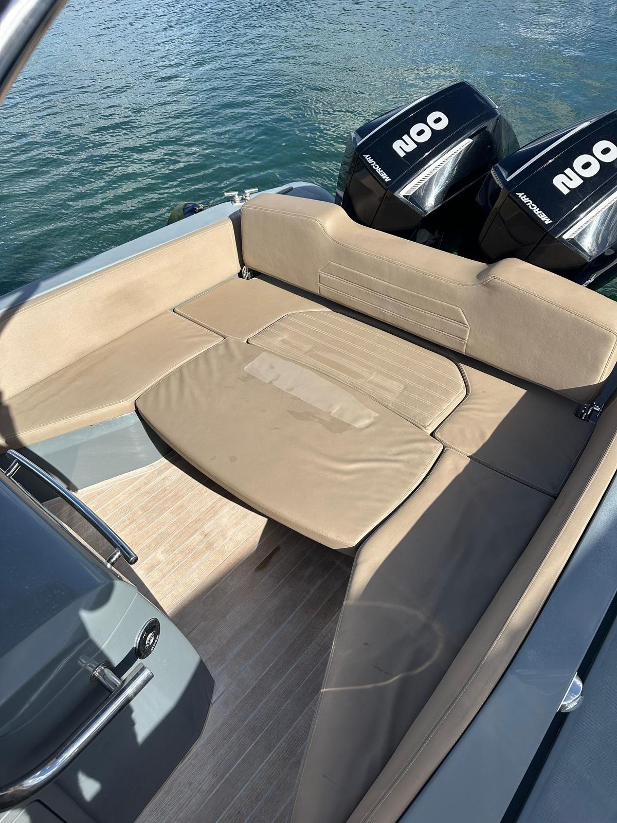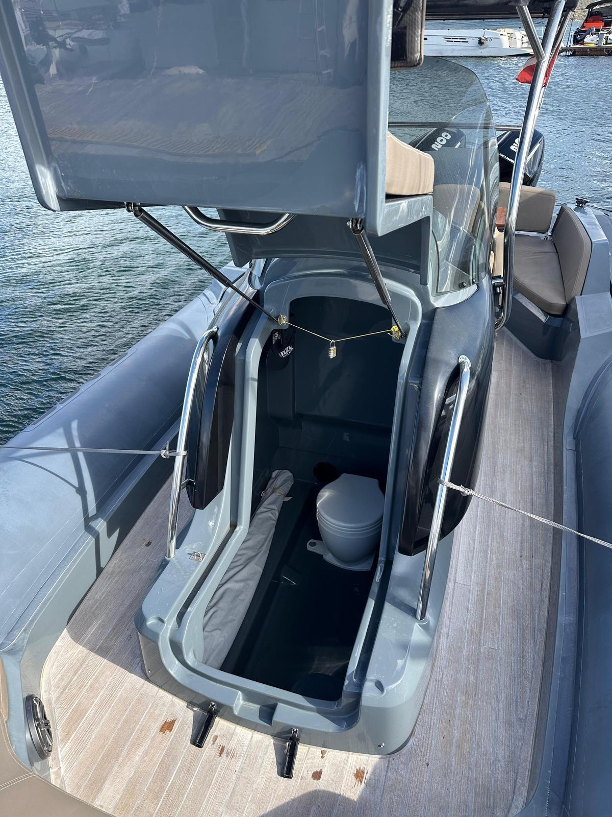 Versione storm - Tubolare ice white con bottazzo ed inserti grigi, cuscineria grigio chiaro