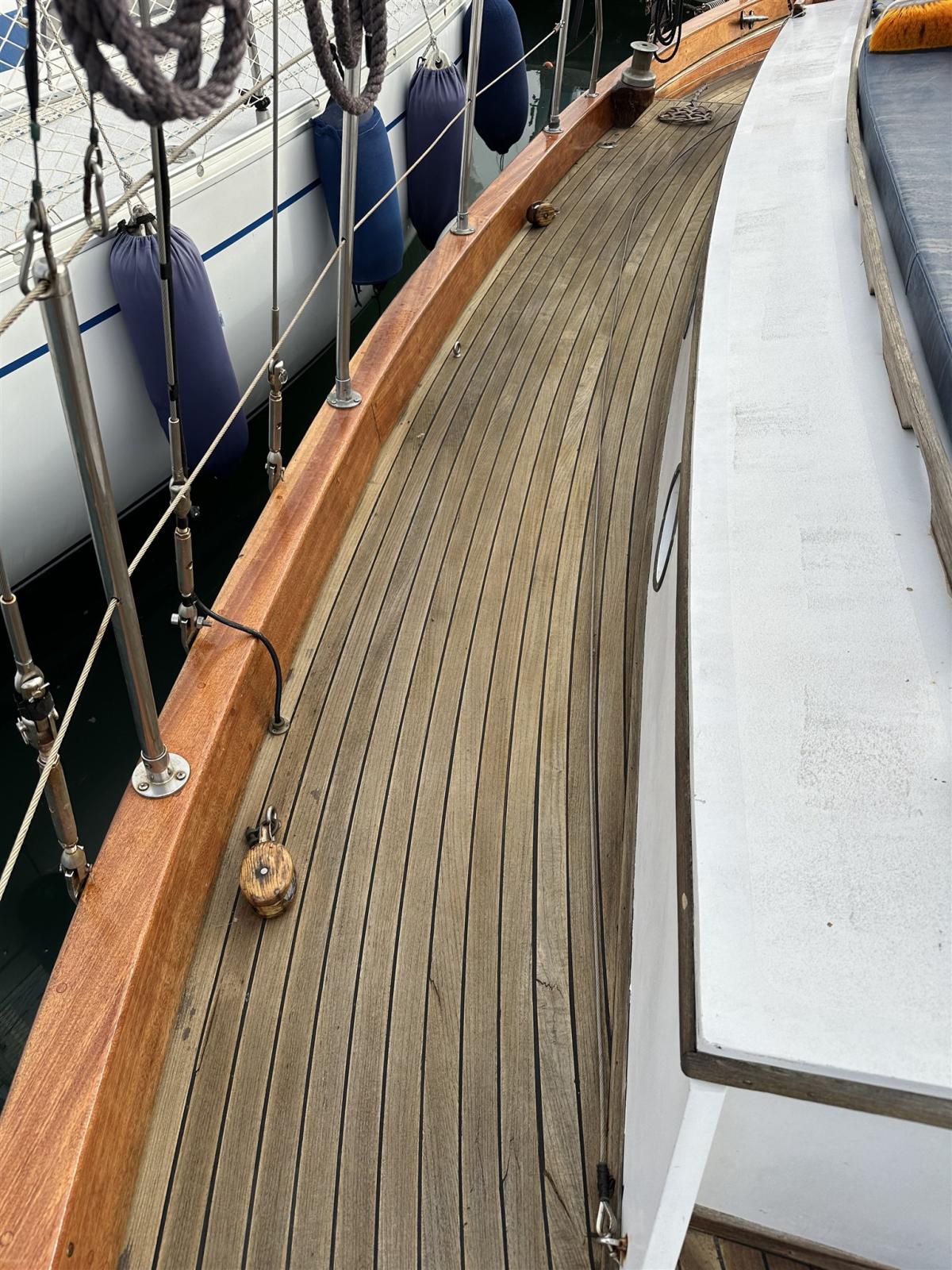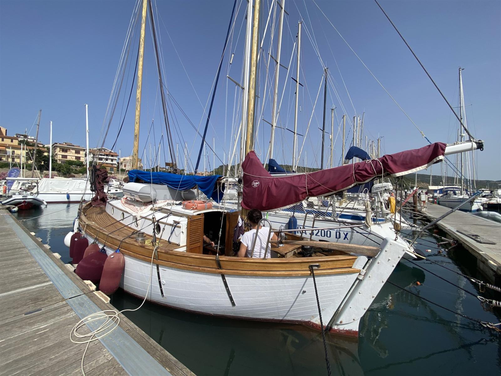 Classica imbarcazione in fasciame di iroko, ricca di fascino. Ultimo esemplare n° 178 costruito alle Aigues Mortes dal cantiere francese Sirvent Frers