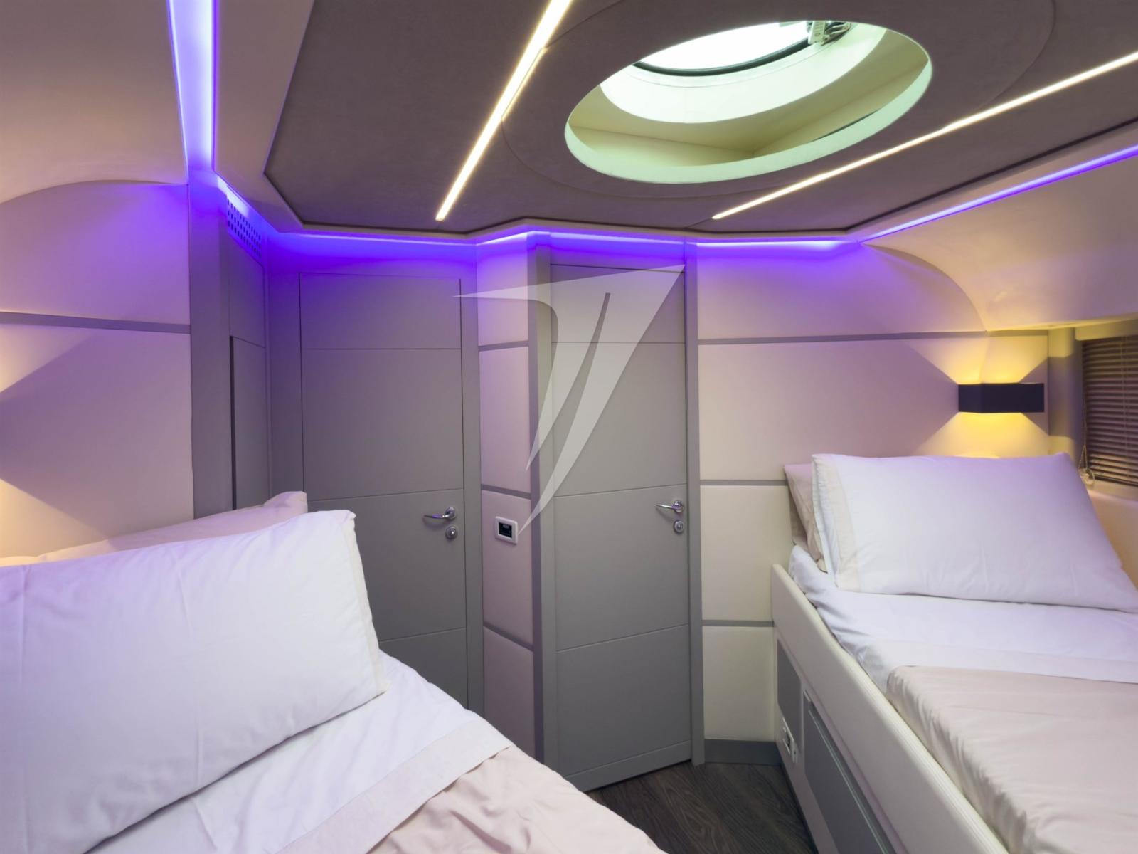 Allarme fumo/gas, Allarme motore, Allarme sentina, Autoclave, Doccia esterna, Flap idraulici, Garage per tender, Hard top, Impianto antincendio, Impianto Aria Compressa, Indicatori Flaps, Lavandino nel Pozzetto, Luci di cortesia, Luci subacquee, Passerella, Pompa di sentina automatica, Pompa di sentina manuale, Porta ingresso, Pozzetto Teak, Presa 220V banchina, Presa acqua banchina, Salpa Ancore Elettrico, Scaletta da bagno, Tavolo pozzetto, Tavolo Salone Abbattibile, Tromba.