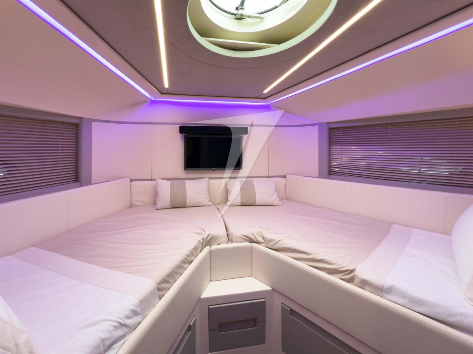 Boiler, Dissalatore, Impianto acque nere, Pavimento interno in legno, Prese interne 12v, Prese interne 220v, Serbatoio Acque Nere, WC marino elettrico.