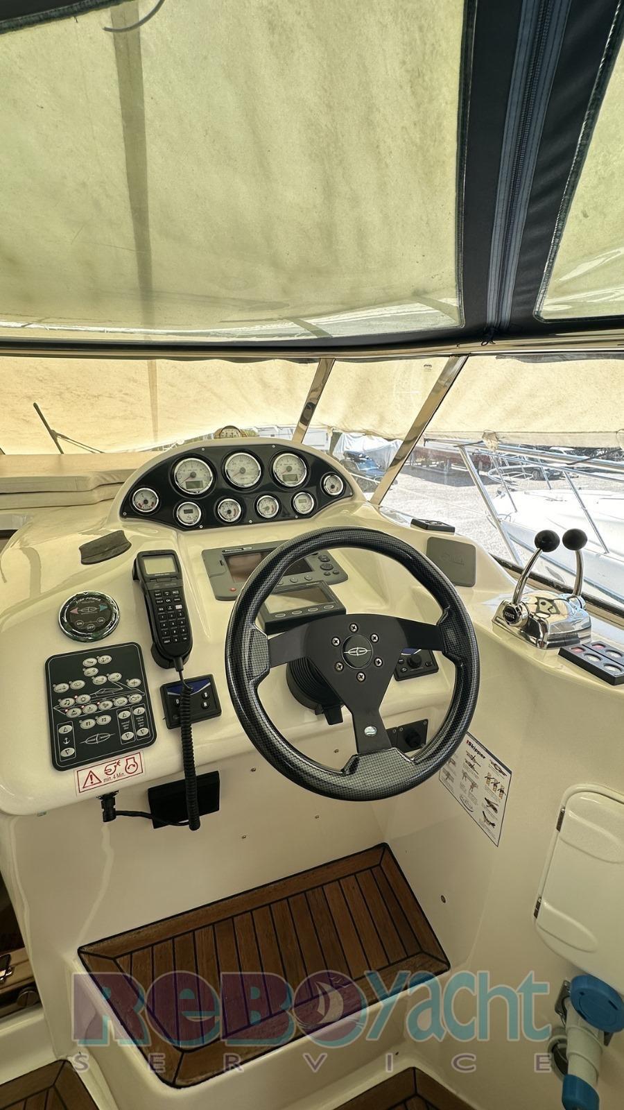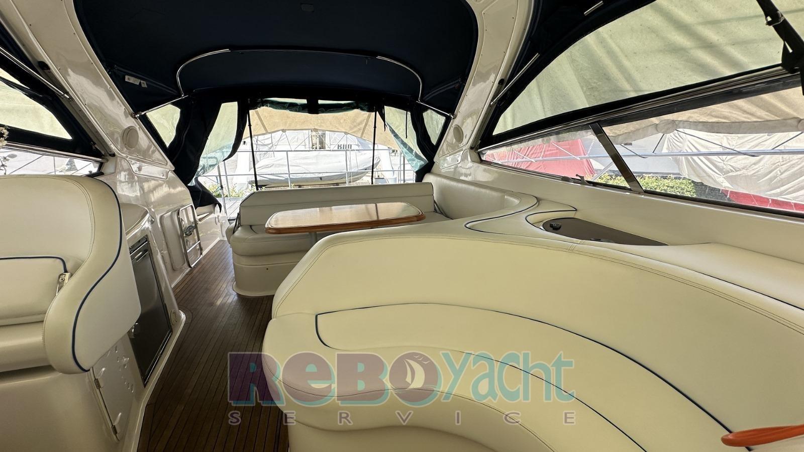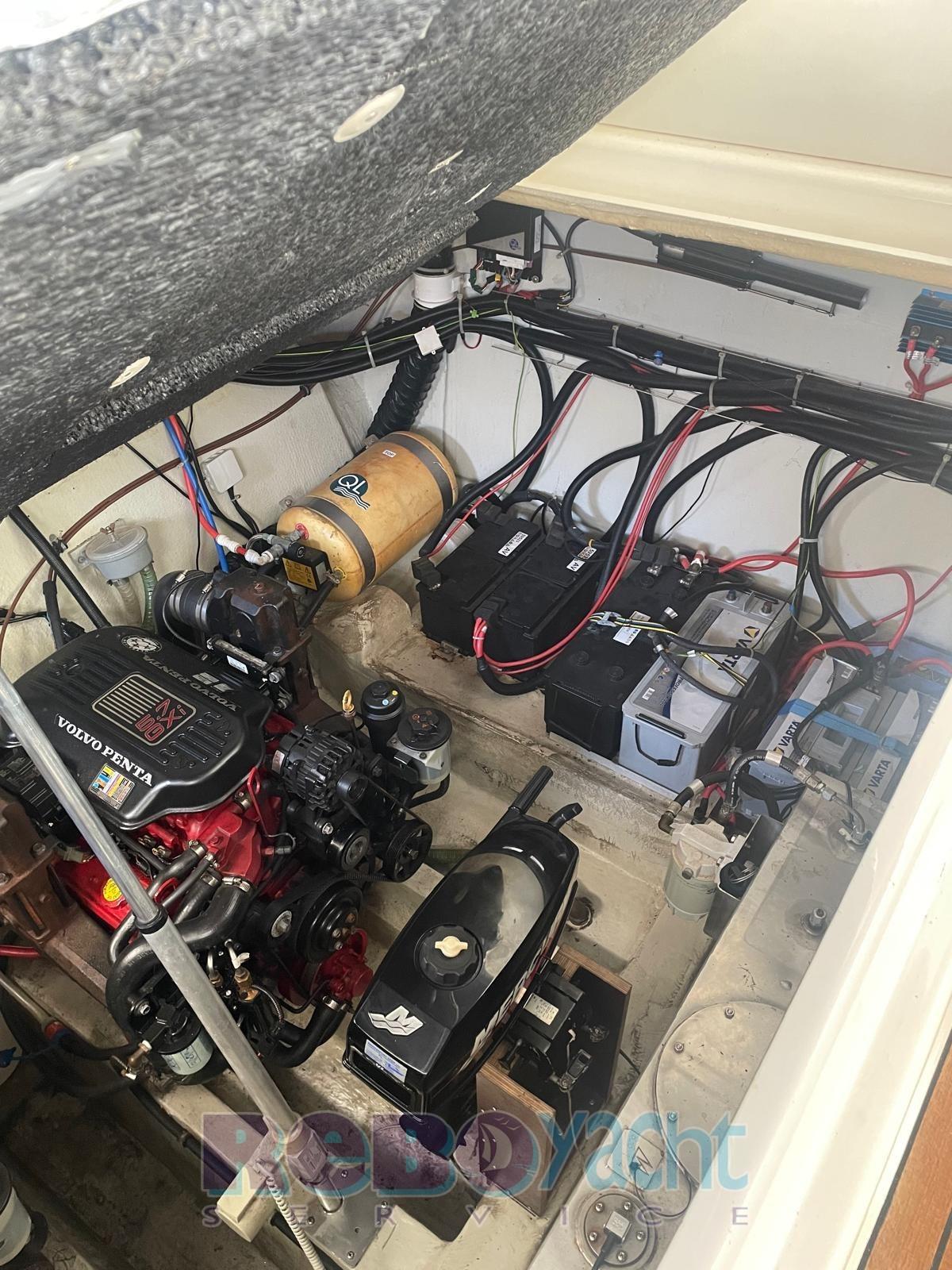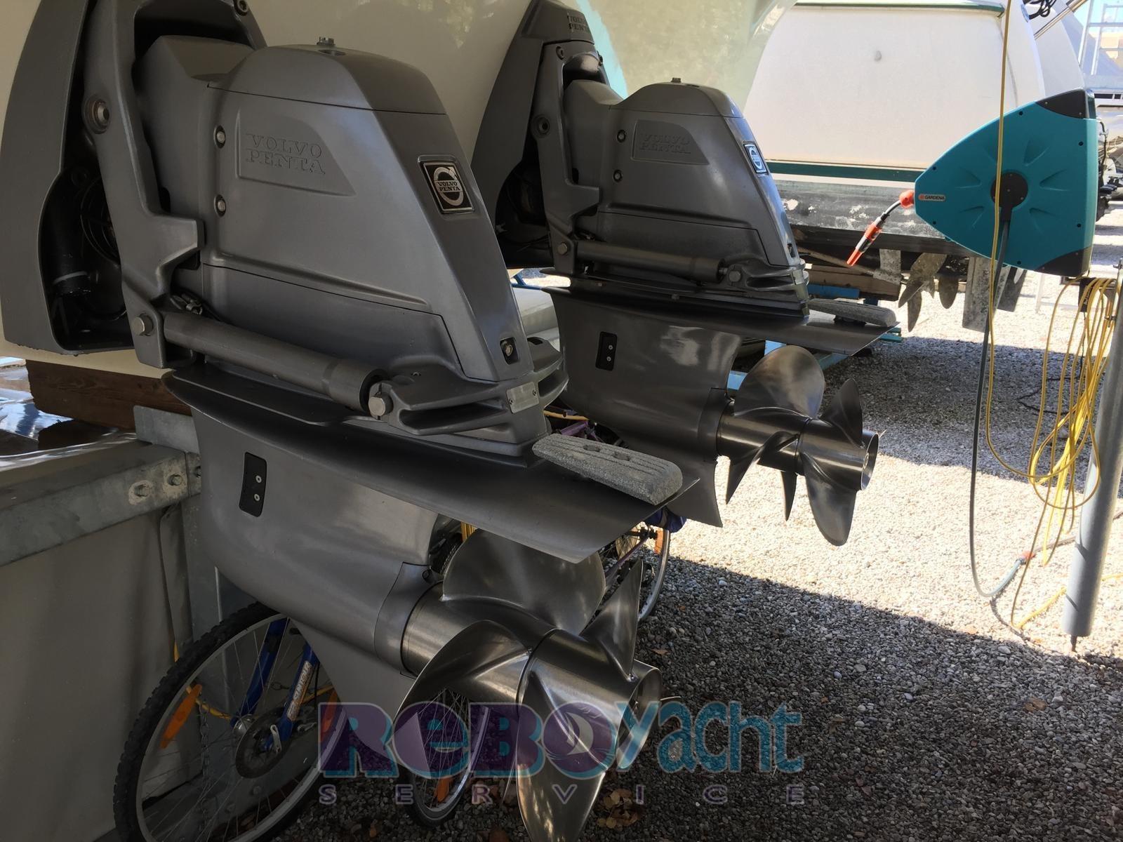 Ancora (20 kg inox + catena inox), Autoclave, Camminamenti laterali in teak, Doccia esterna, Faro orientabile, Flap elettrici, Indicatori Flaps, Luci di cortesia (Led blu in pozzetto), Luci subacquee (a Led), Motore ausiliario (mercury 3,2 hp), Passerella (alluminio), Piattaforma (Teak allungata), Pozzetto Teak, Tavolo pozzetto, Tender (Zodiac).