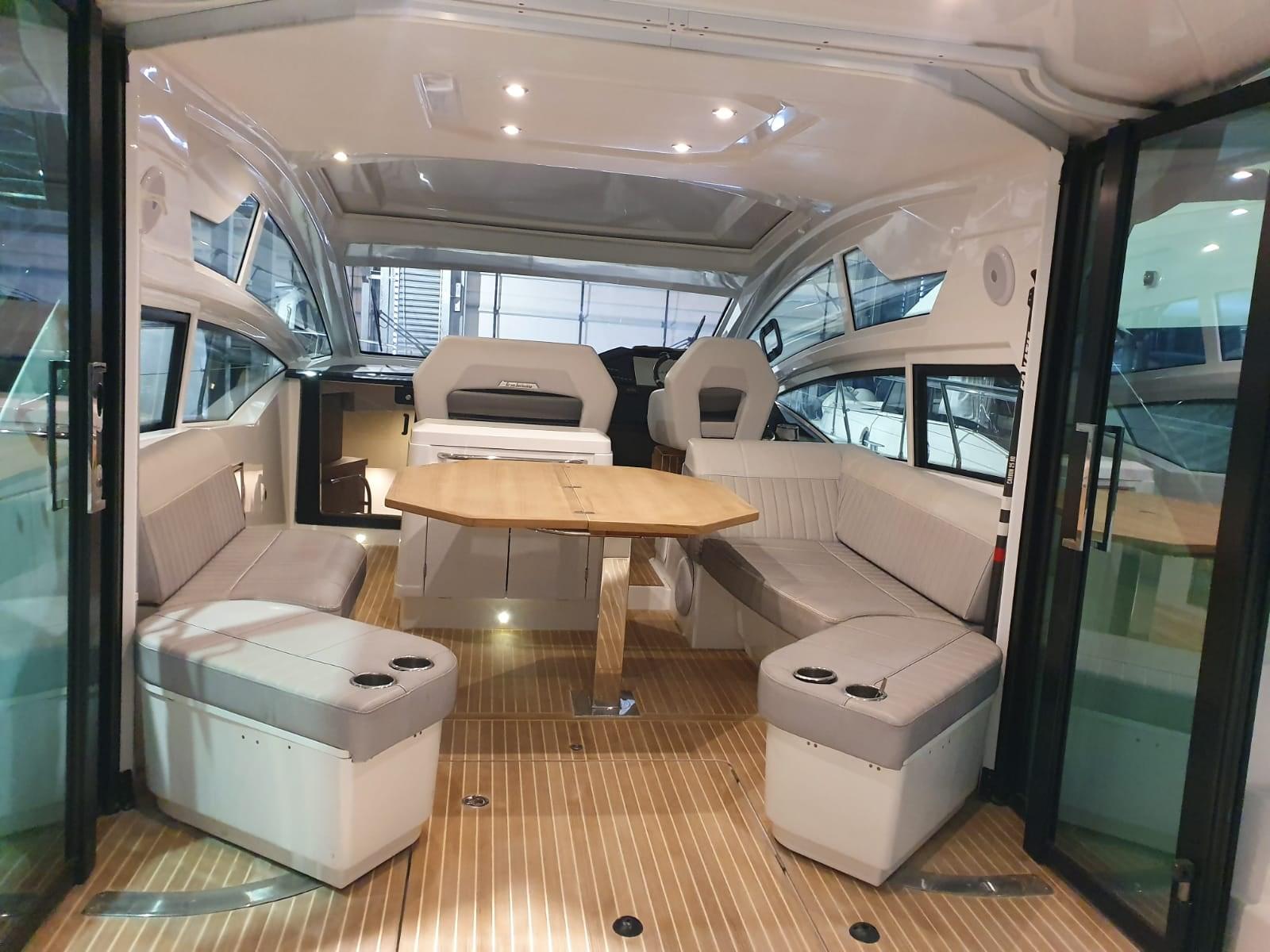 Con le sue linee sportive ed eleganti, il Gran Turismo 46 combina un hard top completamente apribile, vetrate laterali elettriche ed una grande porta a vetri apribile che permette di isolare il pozzetto. Unione perfetta tra aprtura e protezione, offre due possibilità di allestimento della coperta: cucina verso poppa o cucina in pozzetto. L'ultima generazione della carena planante offre per la prima volta la scelta della motorizzazione Volvo IPS 600. Sicuro e perfettamente manovrabile allo stesso tempo, questo modello assicura un grande piacere di navigazione.