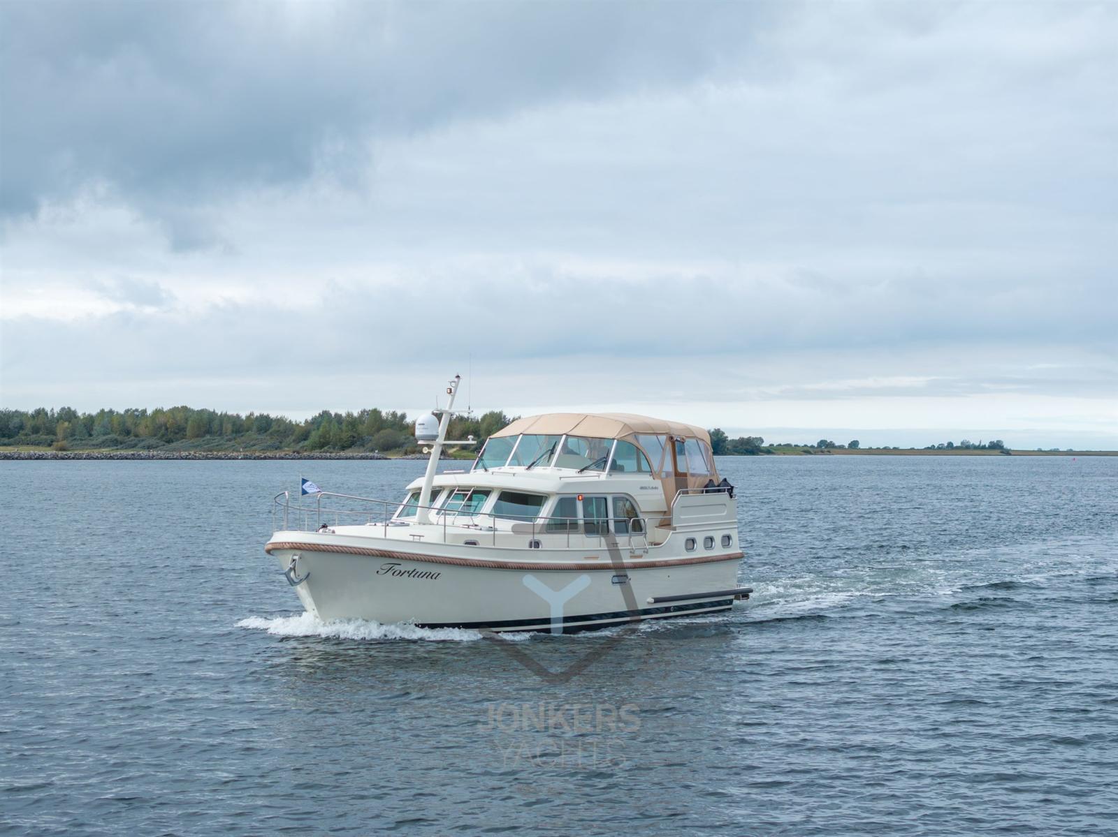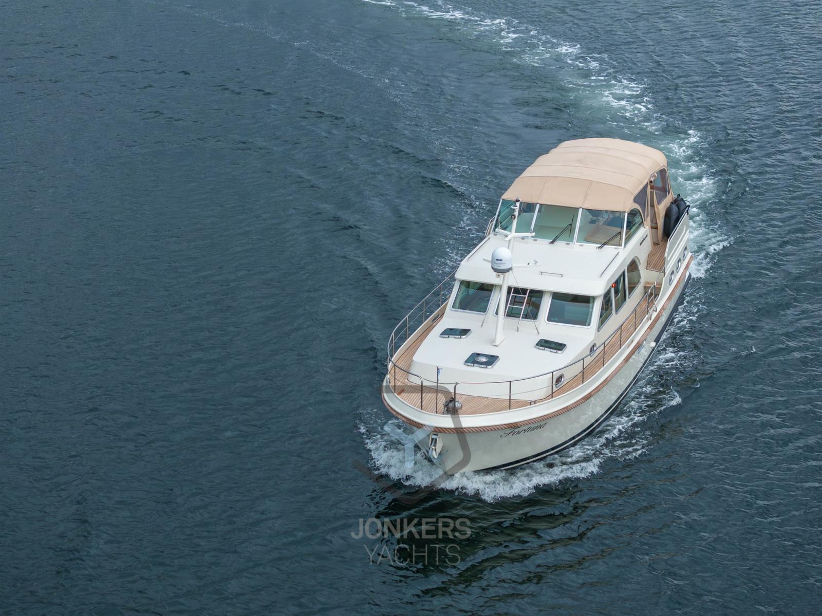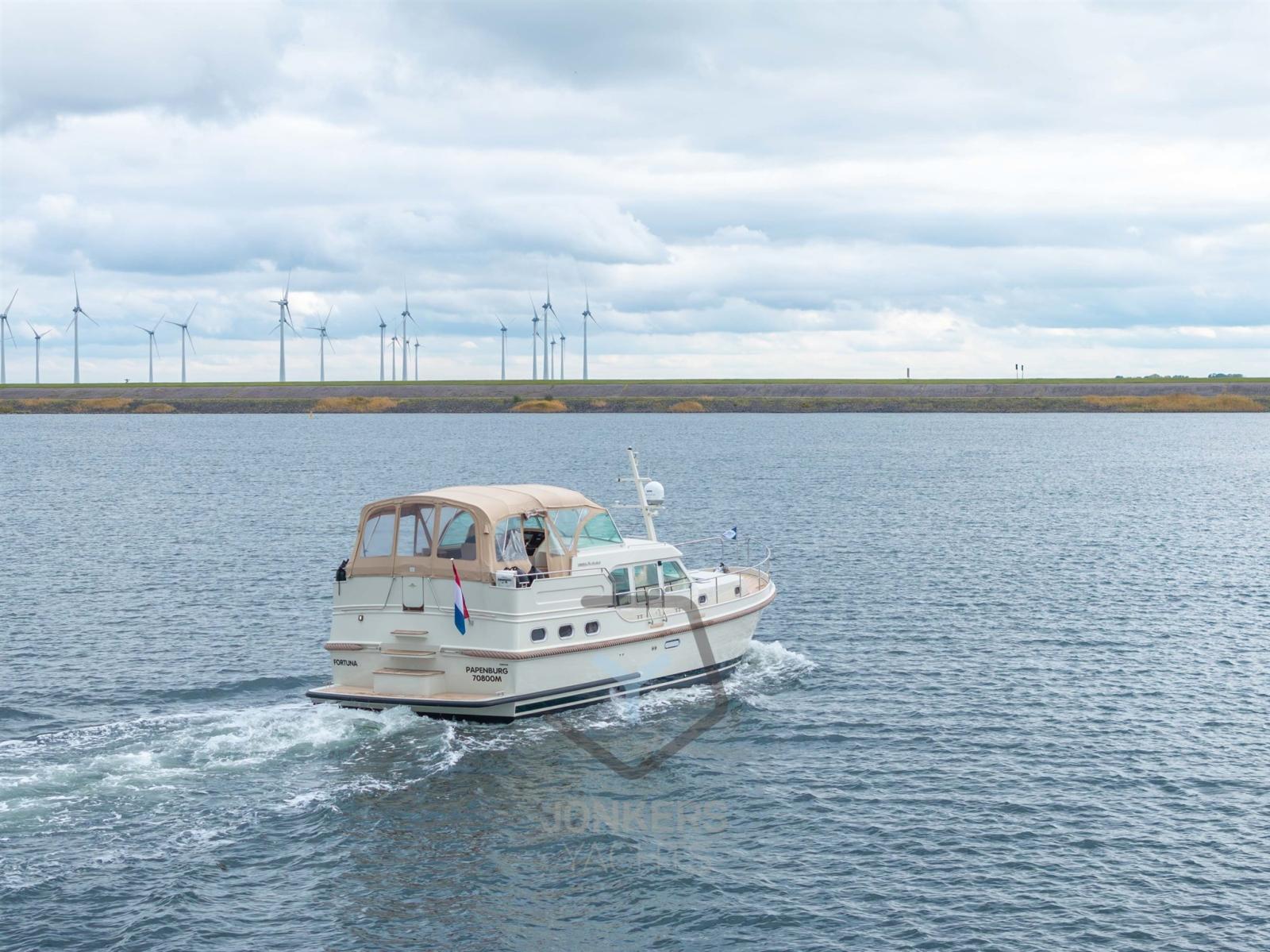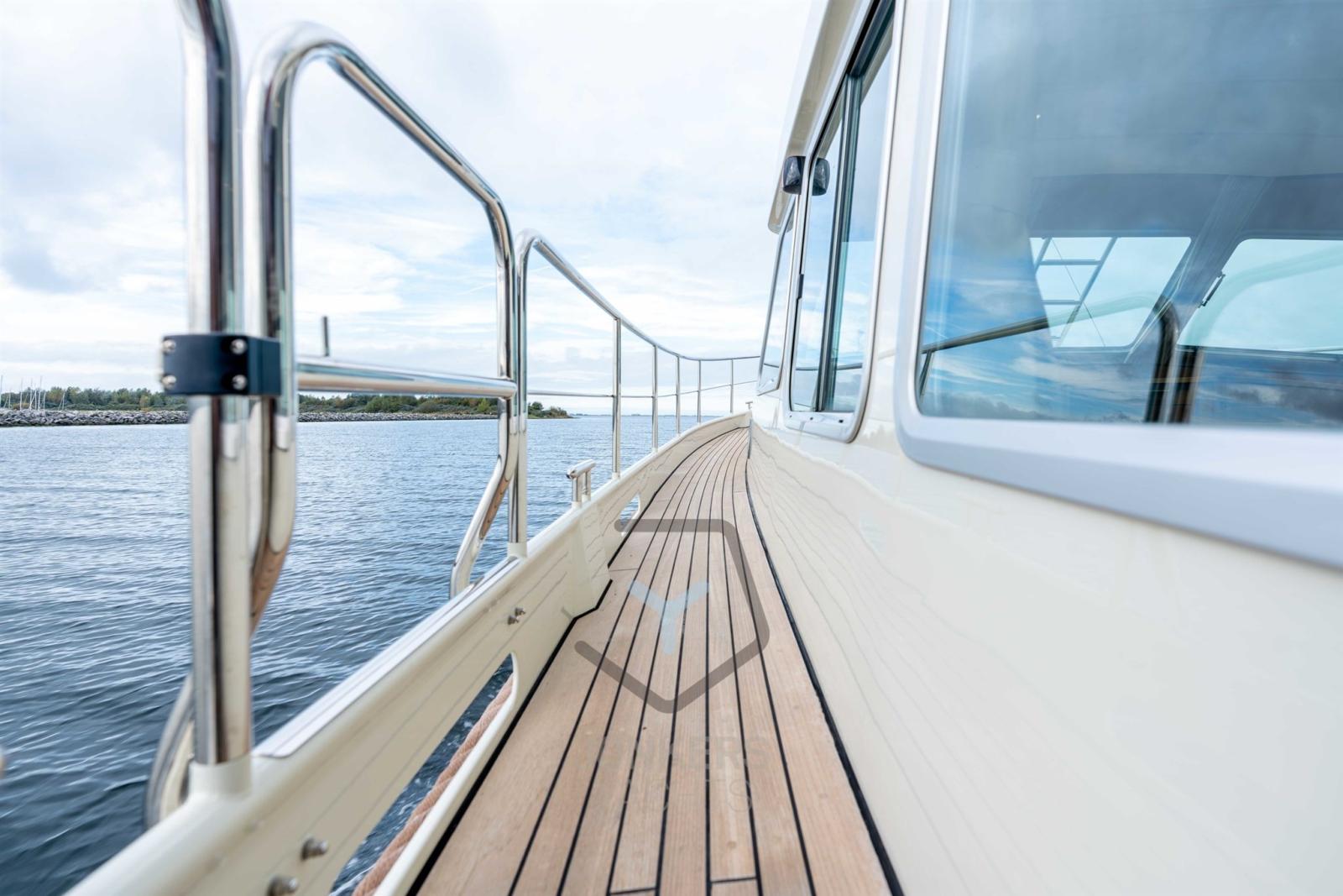 Questa nave ha teak sul ponte di poppa, falchette e ponte di prua, pilota automatico, chartplotter, prese d'aria calda nella postazione di guida esterna, cassetto frigorifero come extra nel salone, illuminazione indiretta ecc.