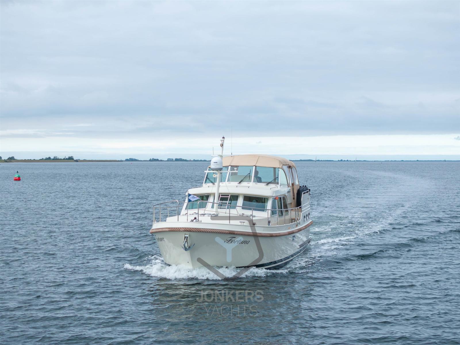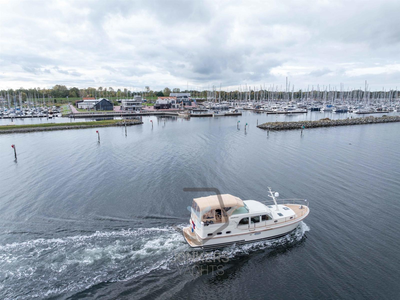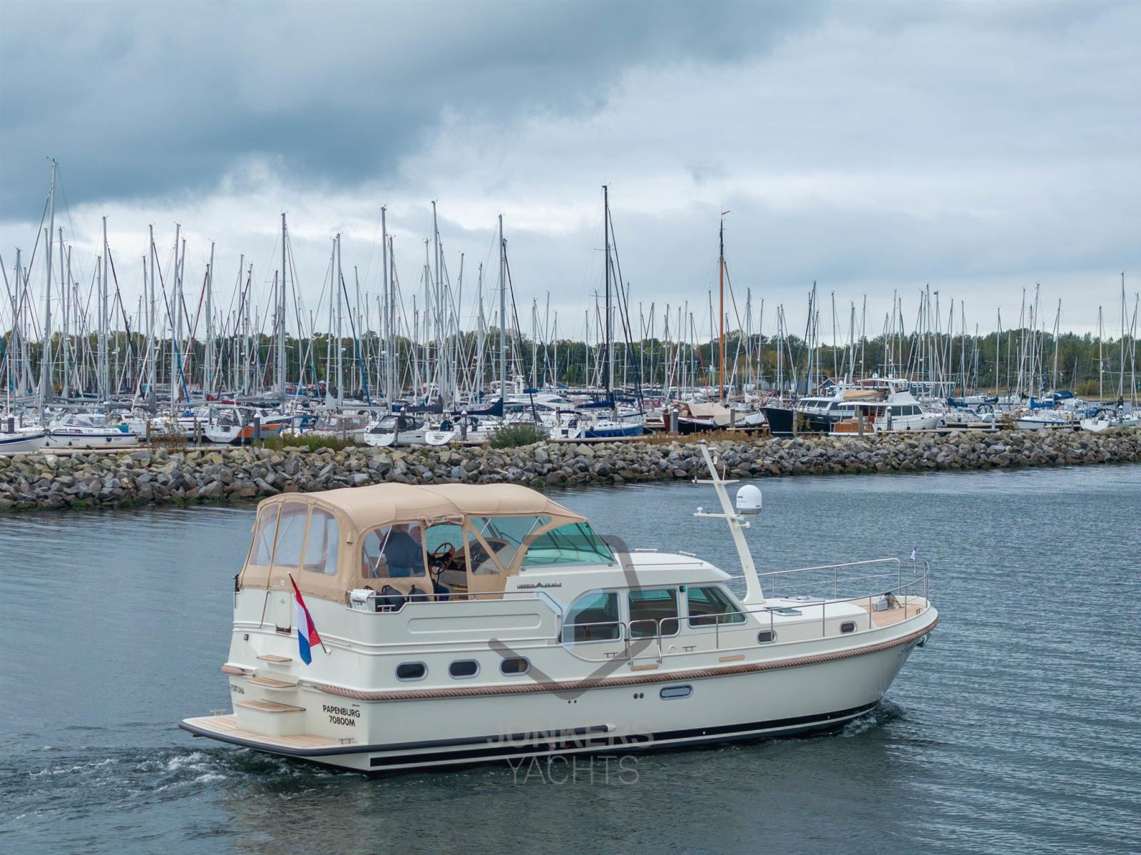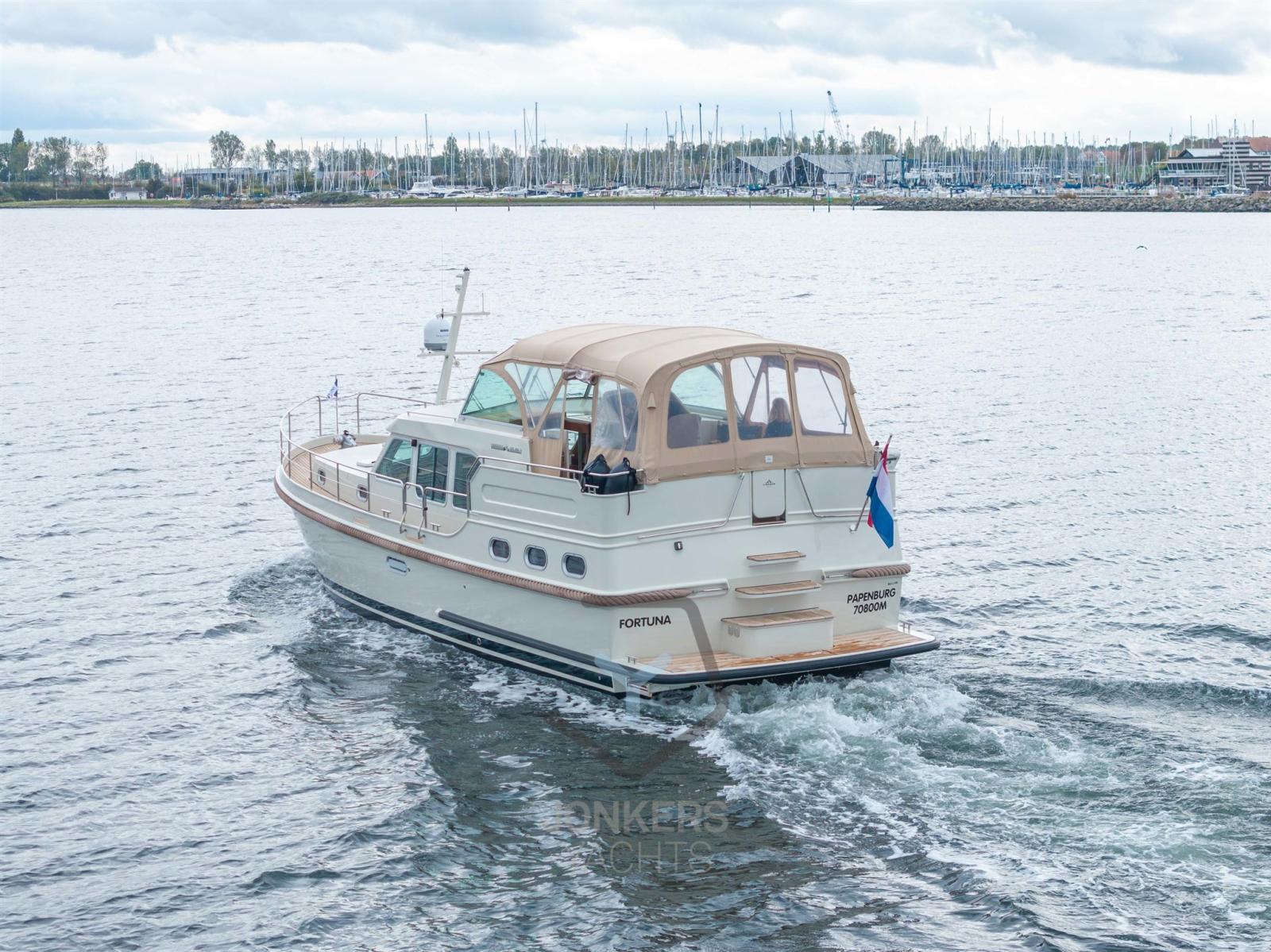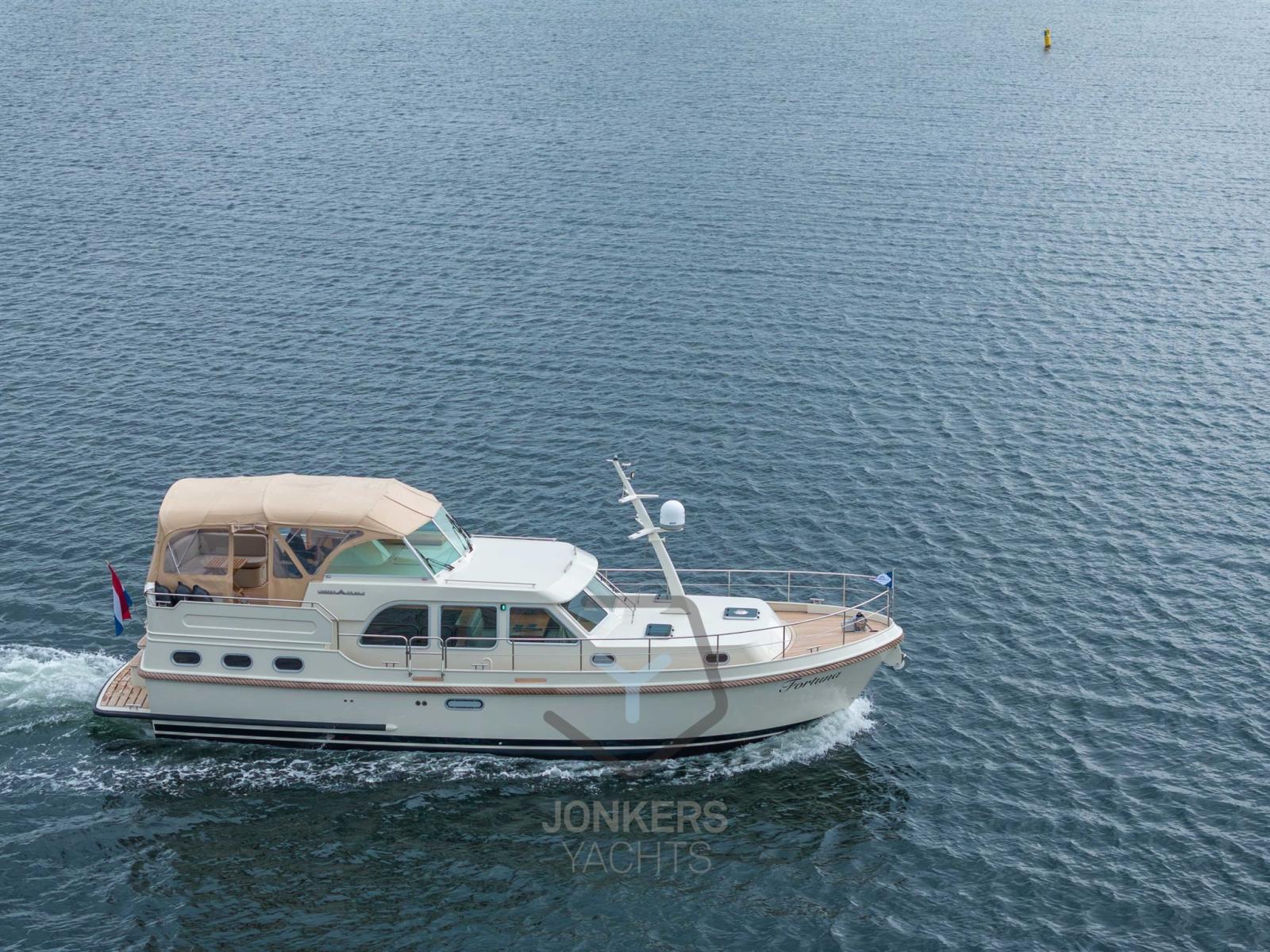 Questa nave ha teak sul ponte di poppa, falchette e ponte di prua, pilota automatico, chartplotter, prese d'aria calda nella postazione di guida esterna, cassetto frigorifero come extra nel salone, illuminazione indiretta ecc.