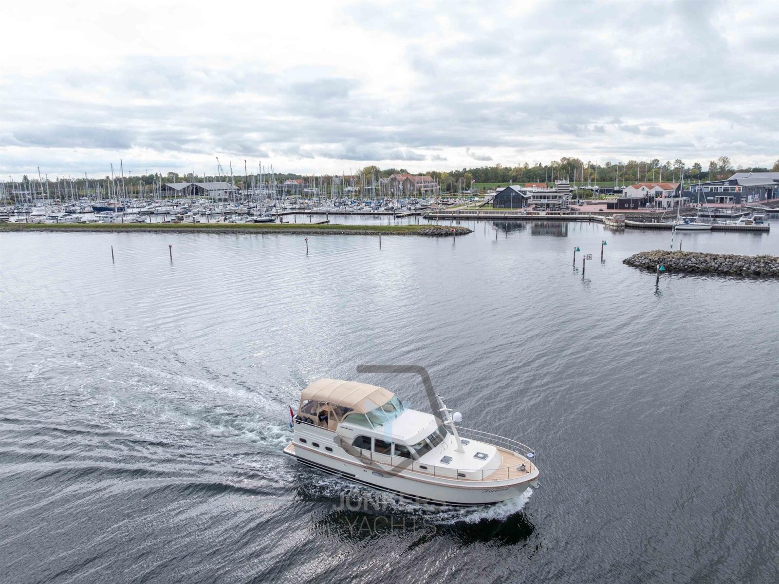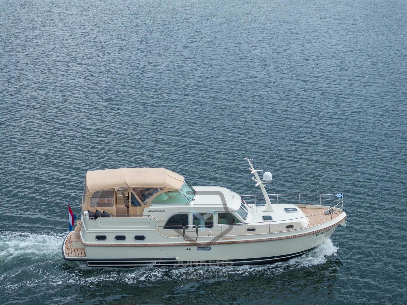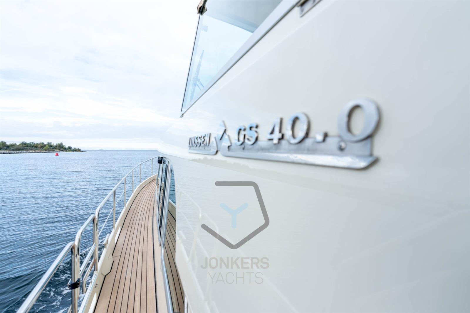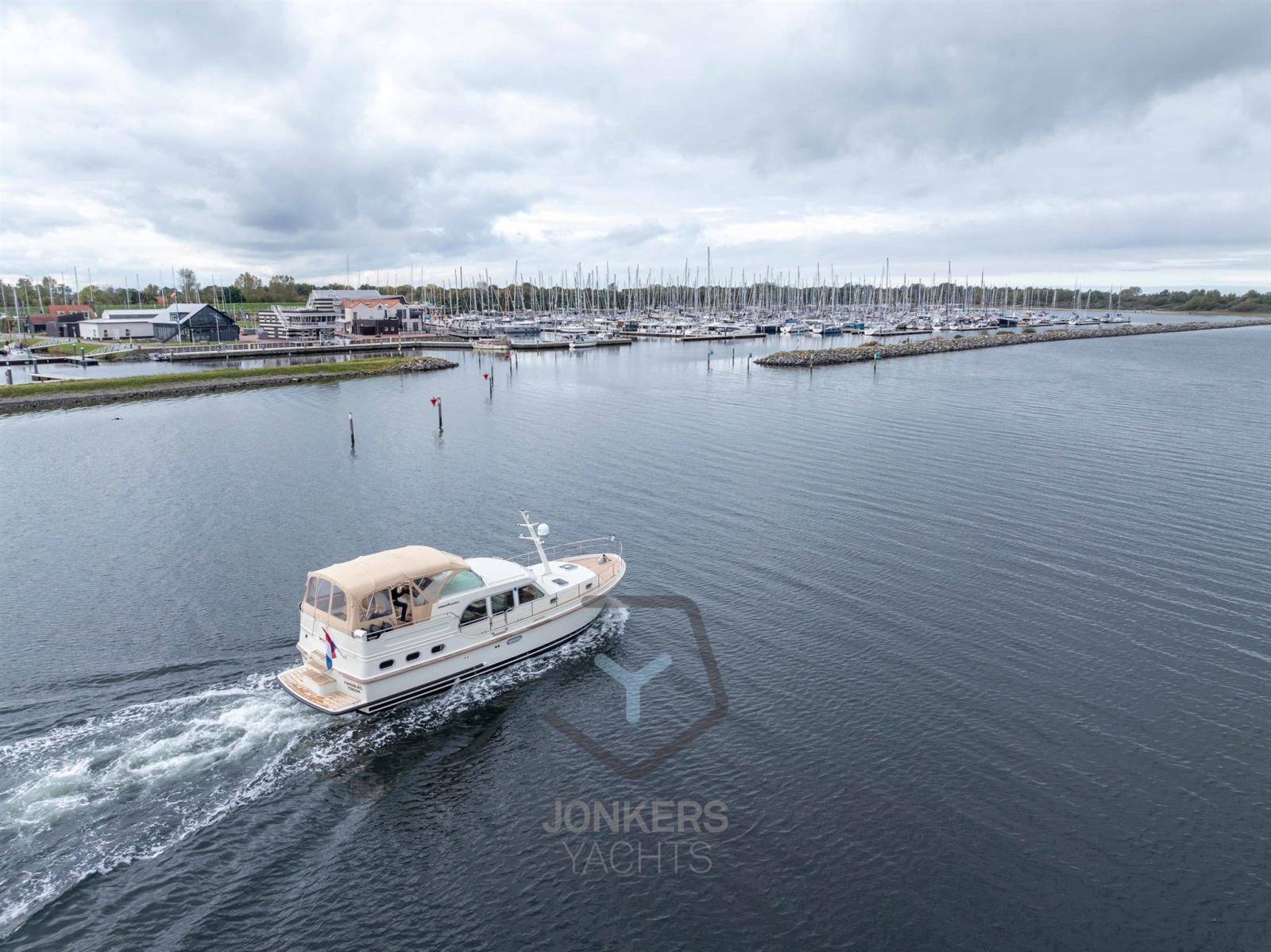 Questa nave ha teak sul ponte di poppa, falchette e ponte di prua, pilota automatico, chartplotter, prese d'aria calda nella postazione di guida esterna, cassetto frigorifero come extra nel salone, illuminazione indiretta ecc.