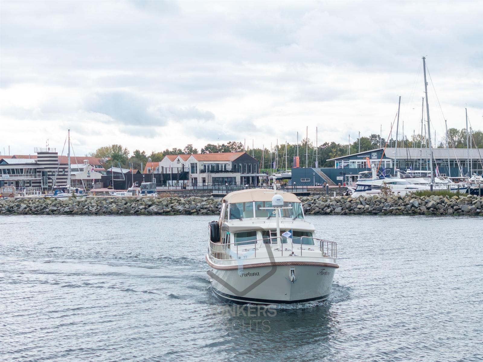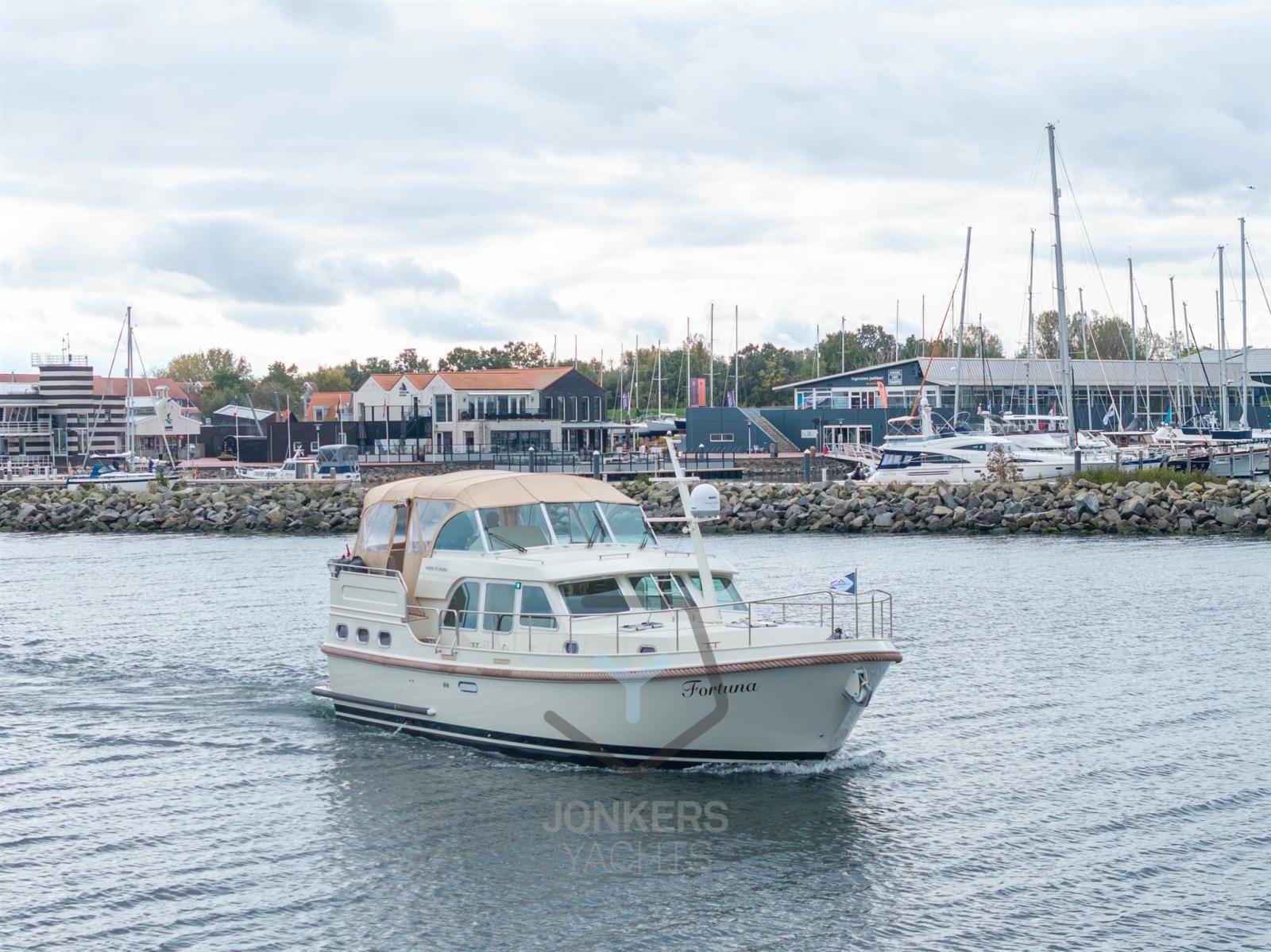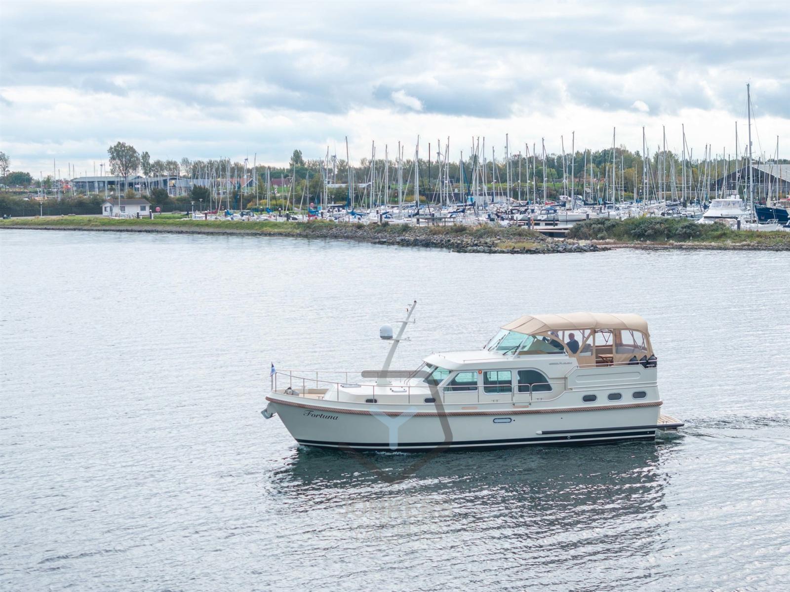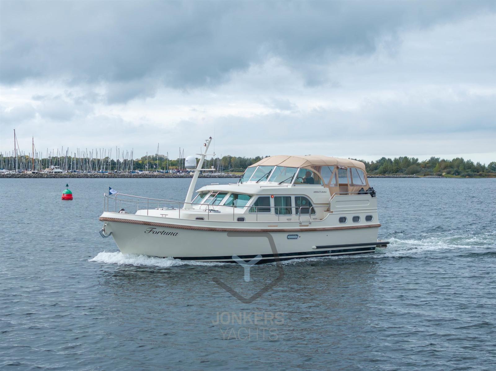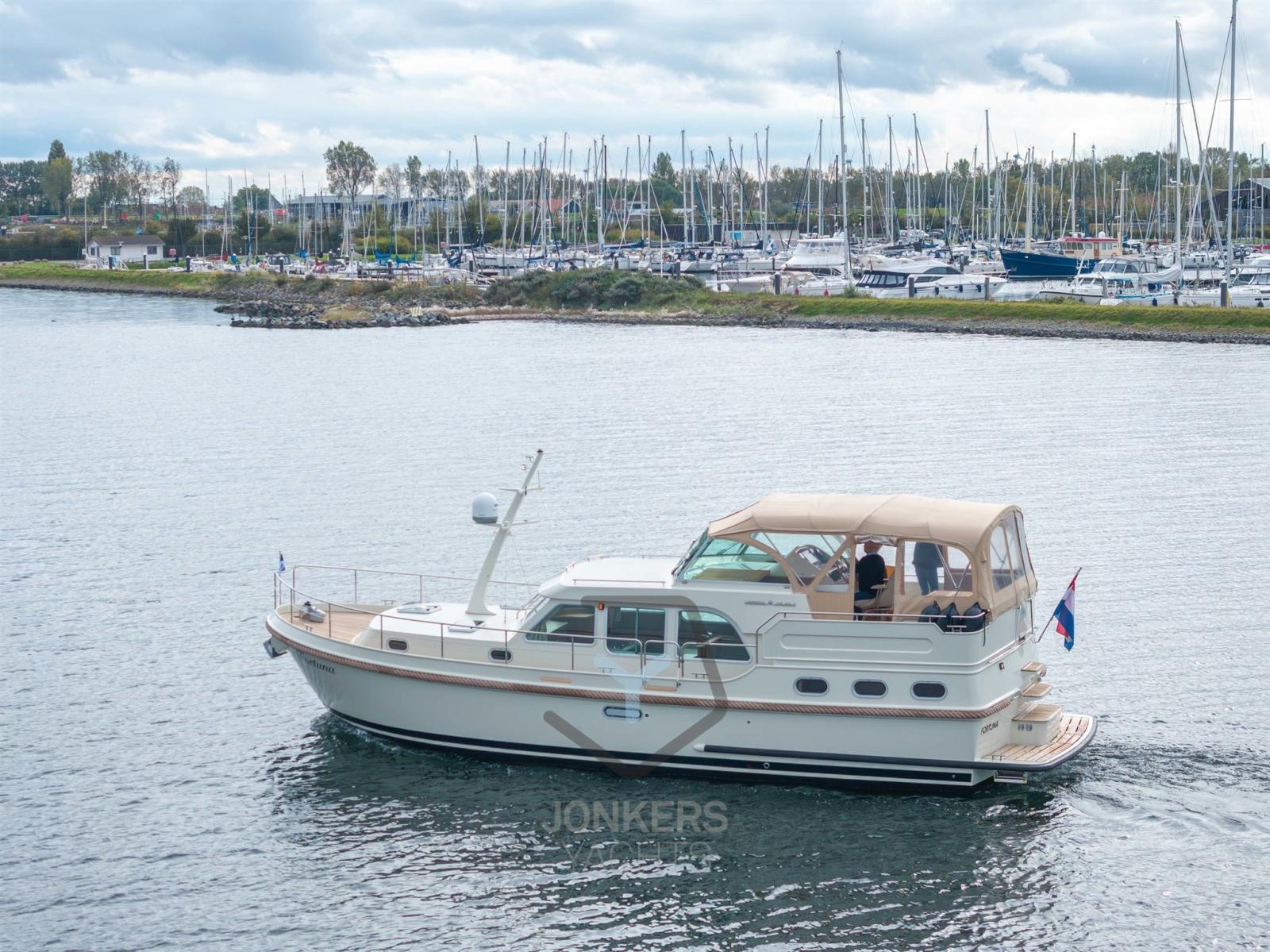 Questa nave ha teak sul ponte di poppa, falchette e ponte di prua, pilota automatico, chartplotter, prese d'aria calda nella postazione di guida esterna, cassetto frigorifero come extra nel salone, illuminazione indiretta ecc.