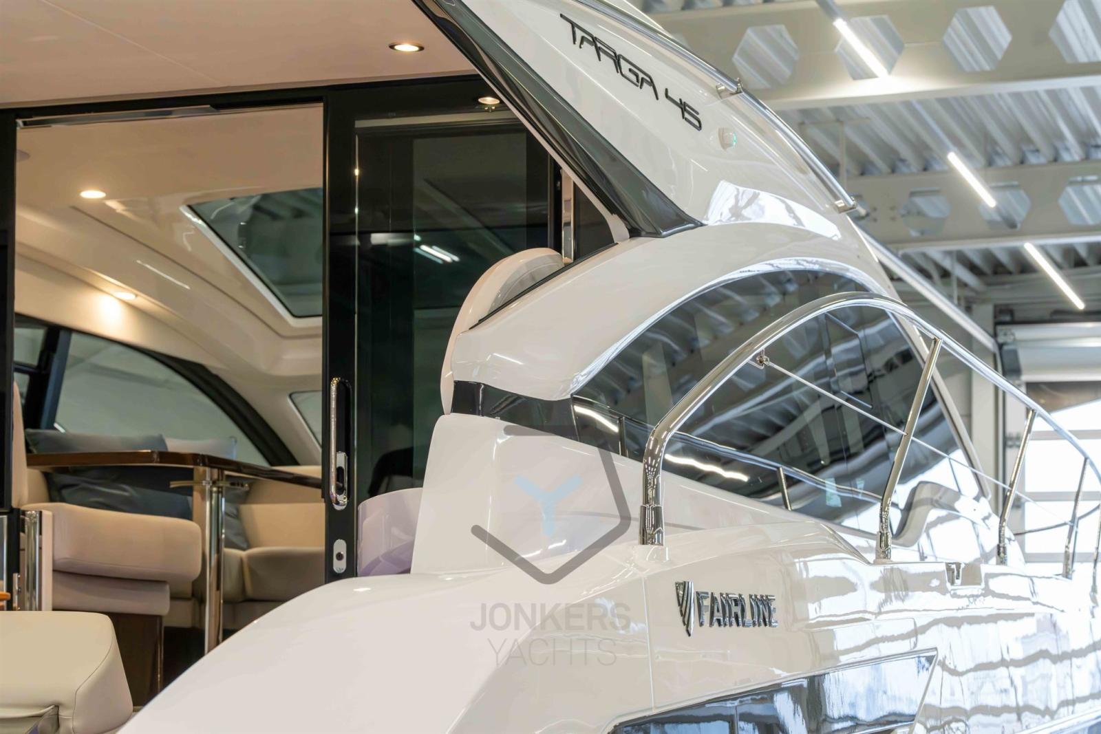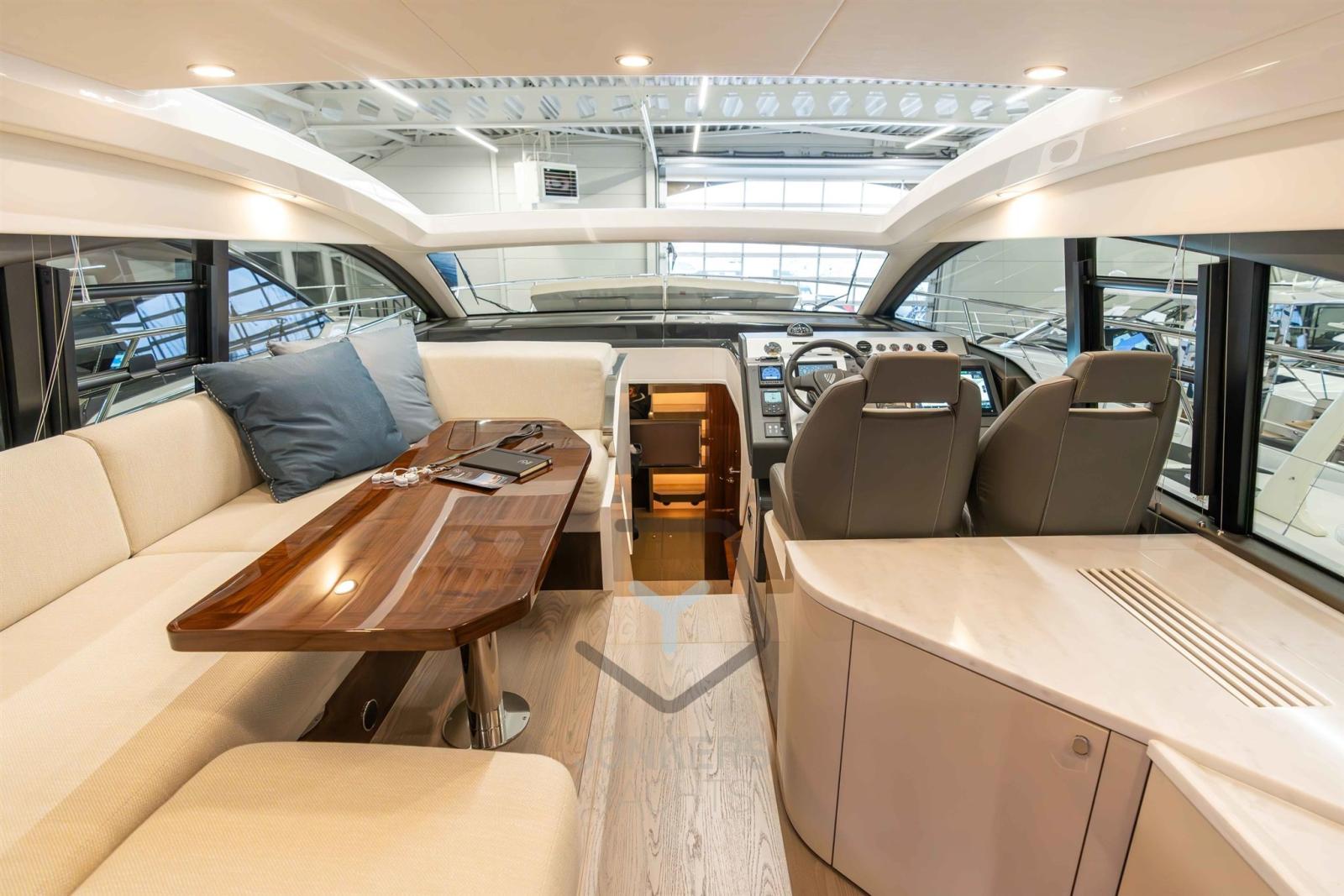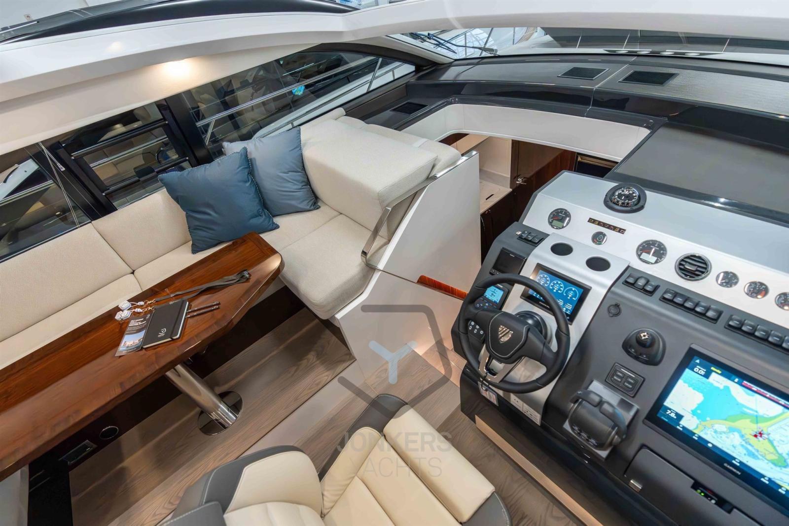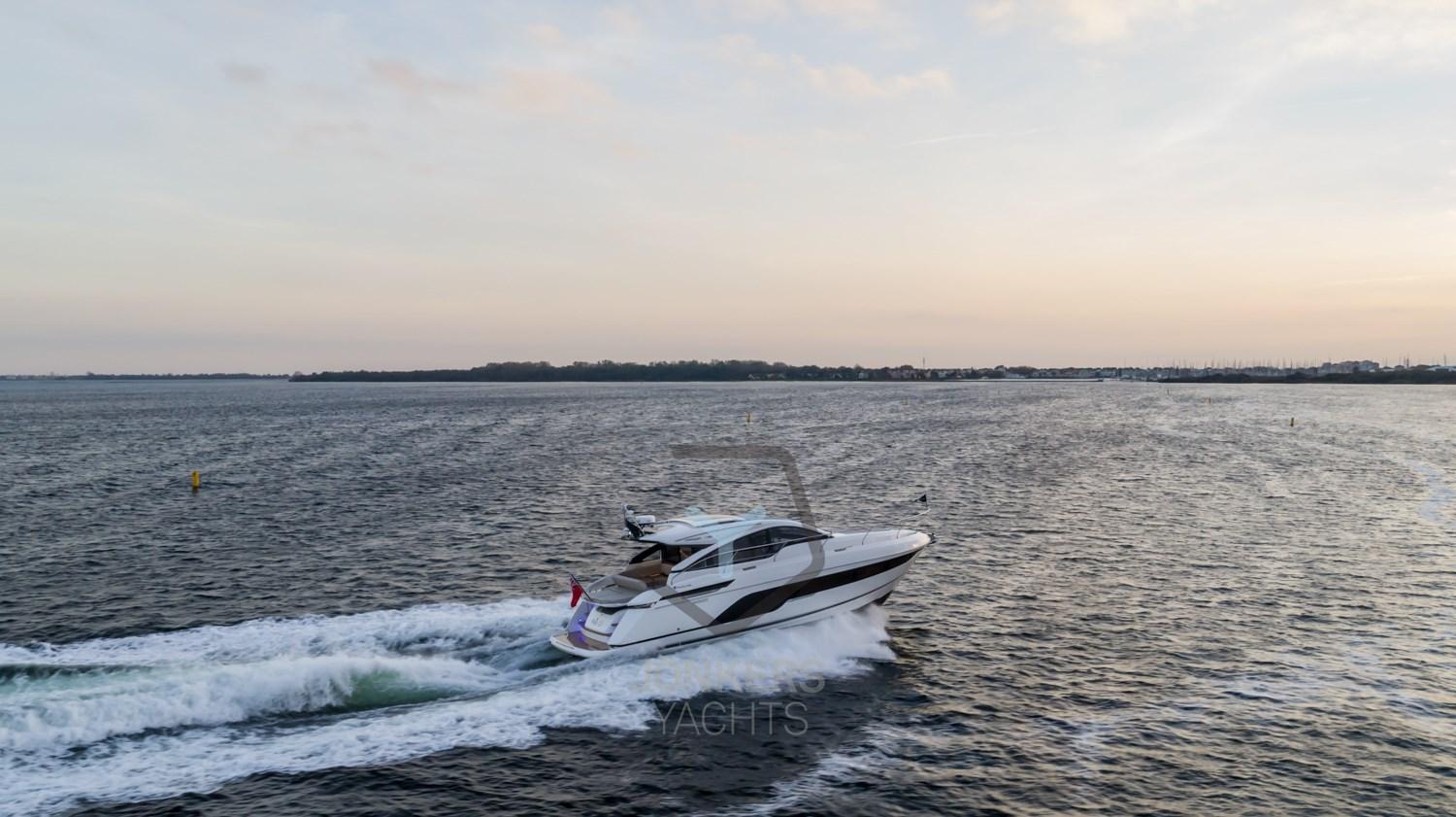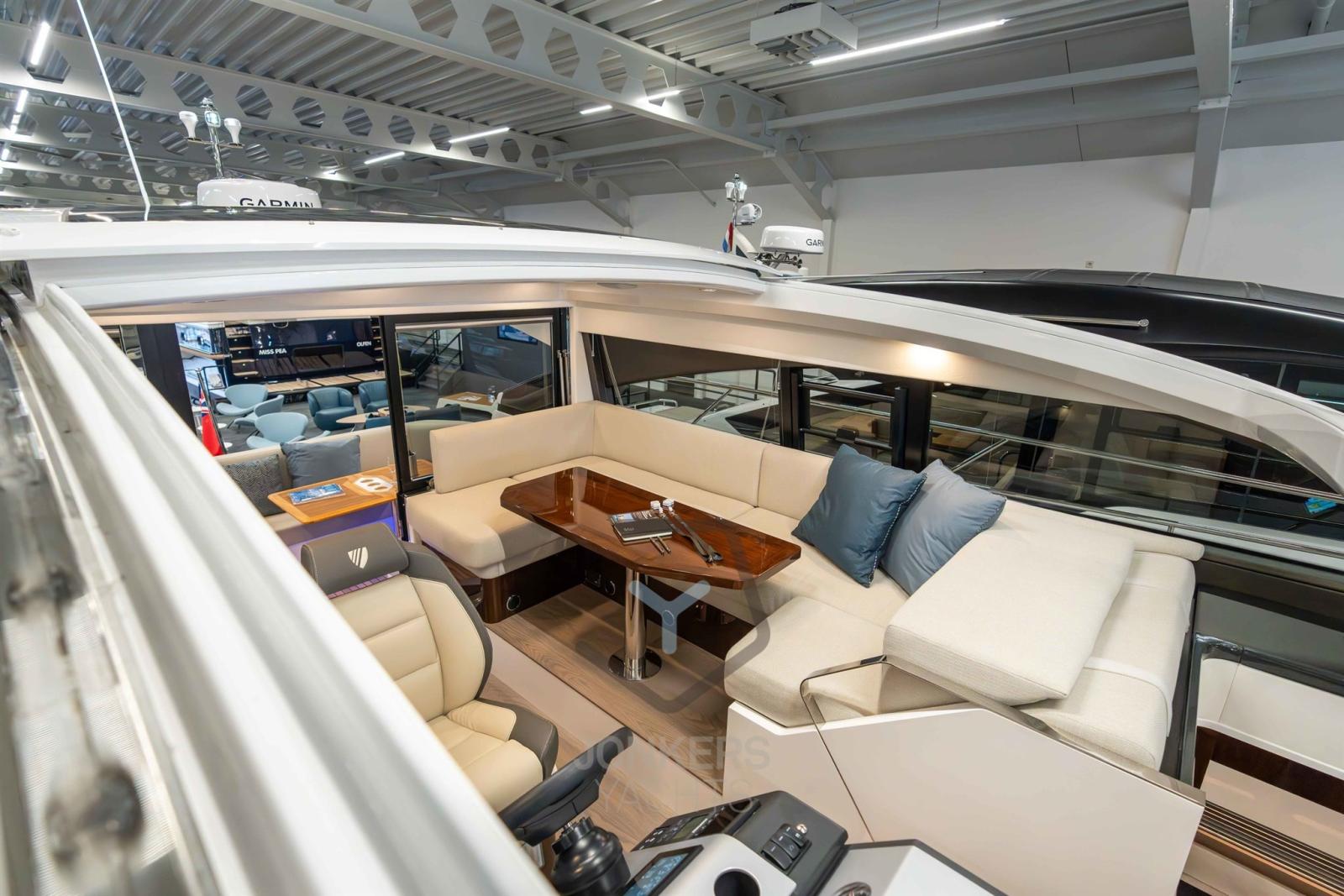 Il relax è ovunque; Sdraiati sugli ampi lettini sia sul ponte di poppa che sul ponte di prua o rilassati nel pozzetto. Riparati dal caldo pomeridiano sotto l'elegante tettuccio rigido o fai scorrere indietro il tetto in tela azionato elettricamente con la semplice pressione di un pulsante.