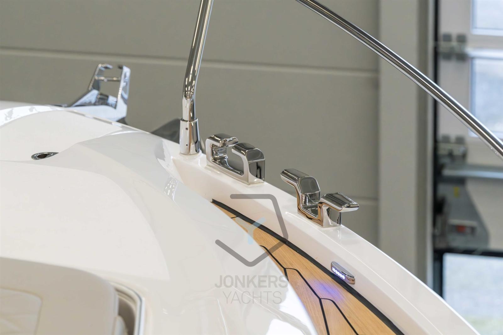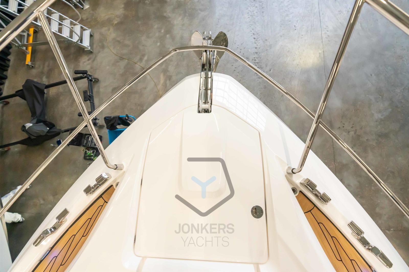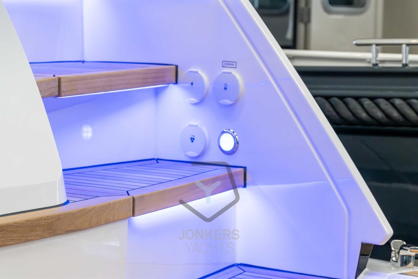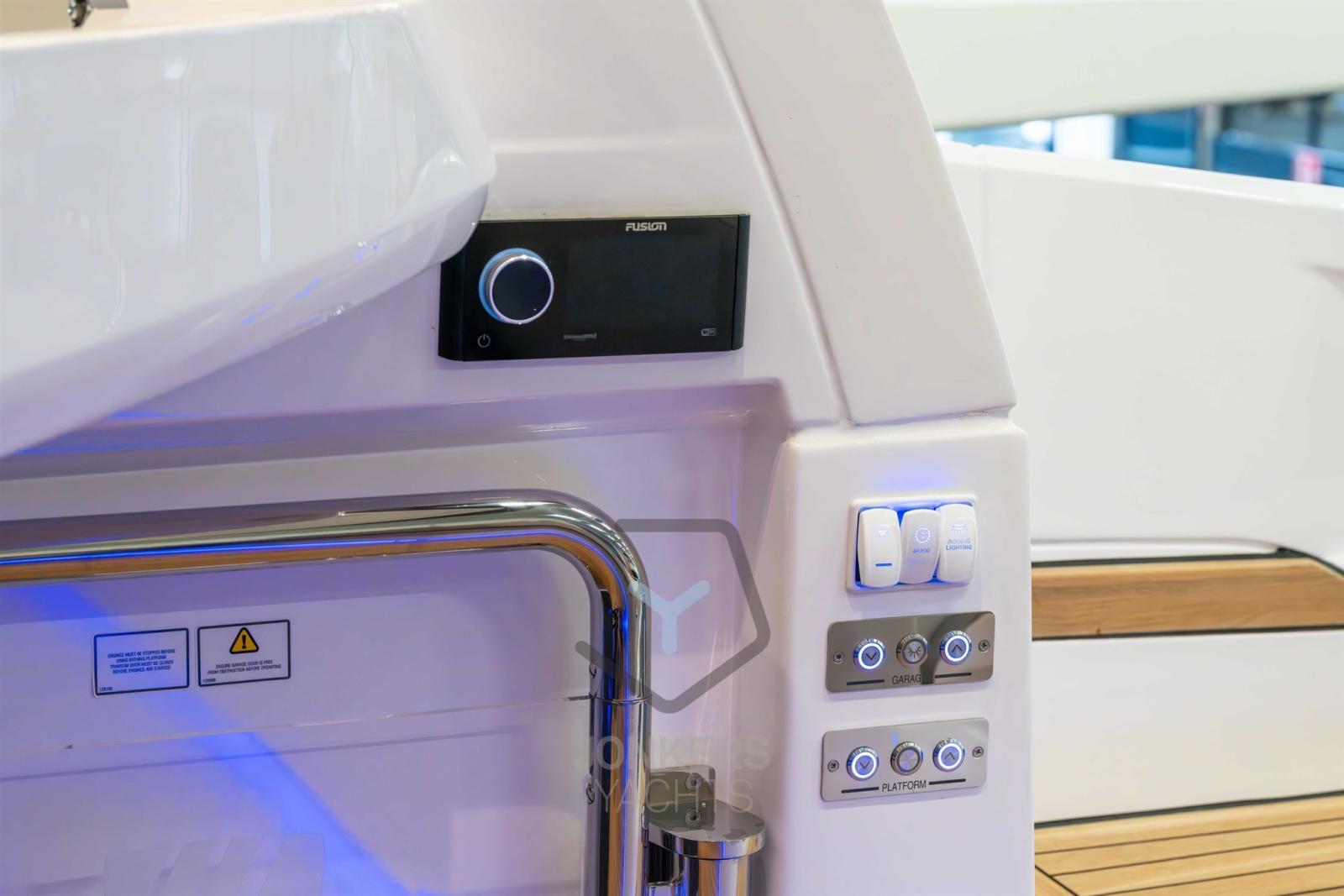 Ancora (Ultra - Stainnless steel - Chain - Electric), Doccia esterna, Flap elettrici (Humphree Interceptors - DYNAMIC PLUS system), Impianto antincendio, Piattaforma (Teak laid swim platform), Pompa di sentina automatica, Pompa di sentina manuale, Scaletta da bagno, Tavolo pozzetto, Tuga in teak.