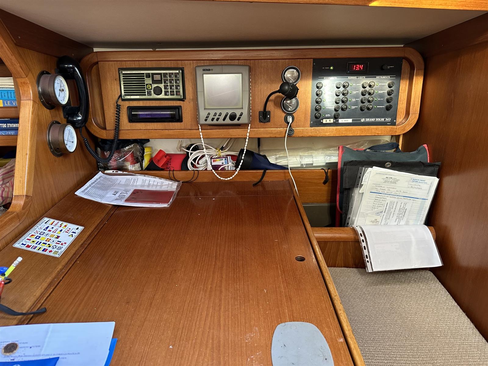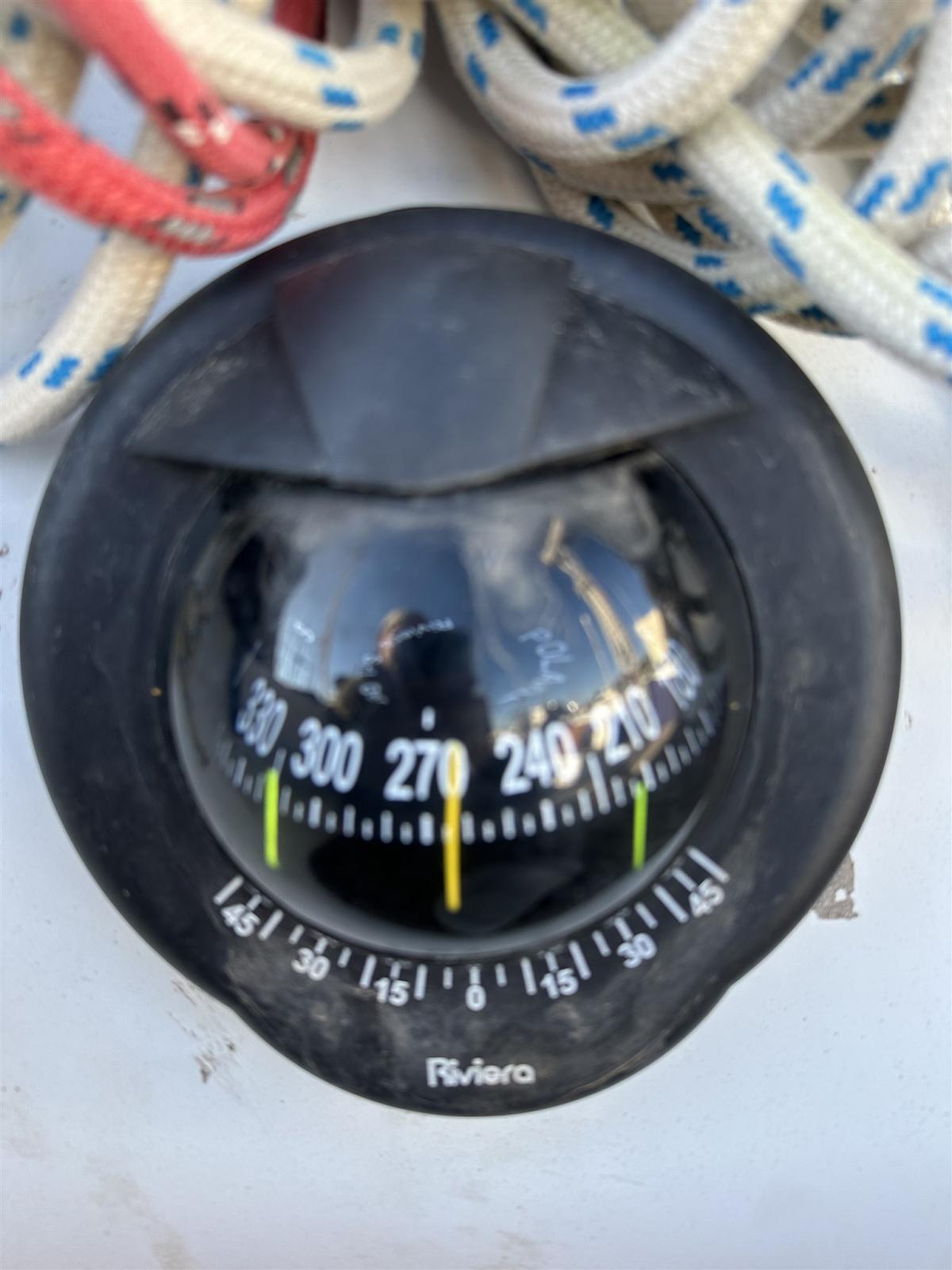 Bussola (2023 Riviera), Ecoscandaglio (Raymarine), FaxGSM, Pilota automatico (Autohelm ST 4000), Plotter con antenna GPS, Radio VHF (Sailor).