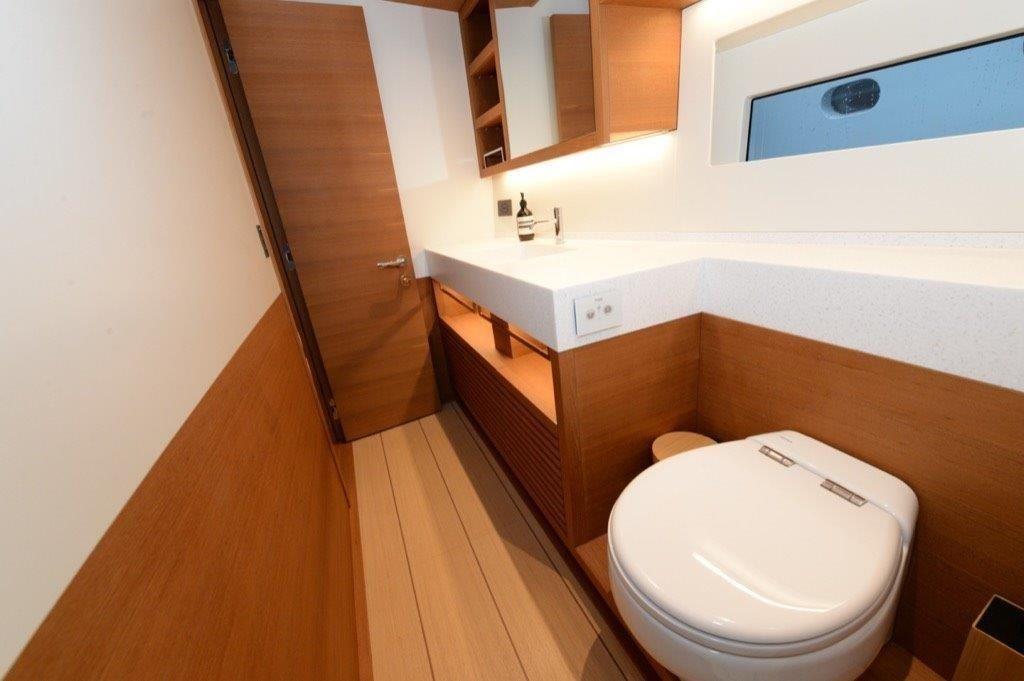 Clima reversibile, Dissalatore (OSMOSEA NEW 12-200 200L/H), Impianto acque nere, Pavimento interno in legno, Prese interne 12v, Prese interne 220v, 2 Serbatoio Acque Nere, 3 WC marino elettrico.