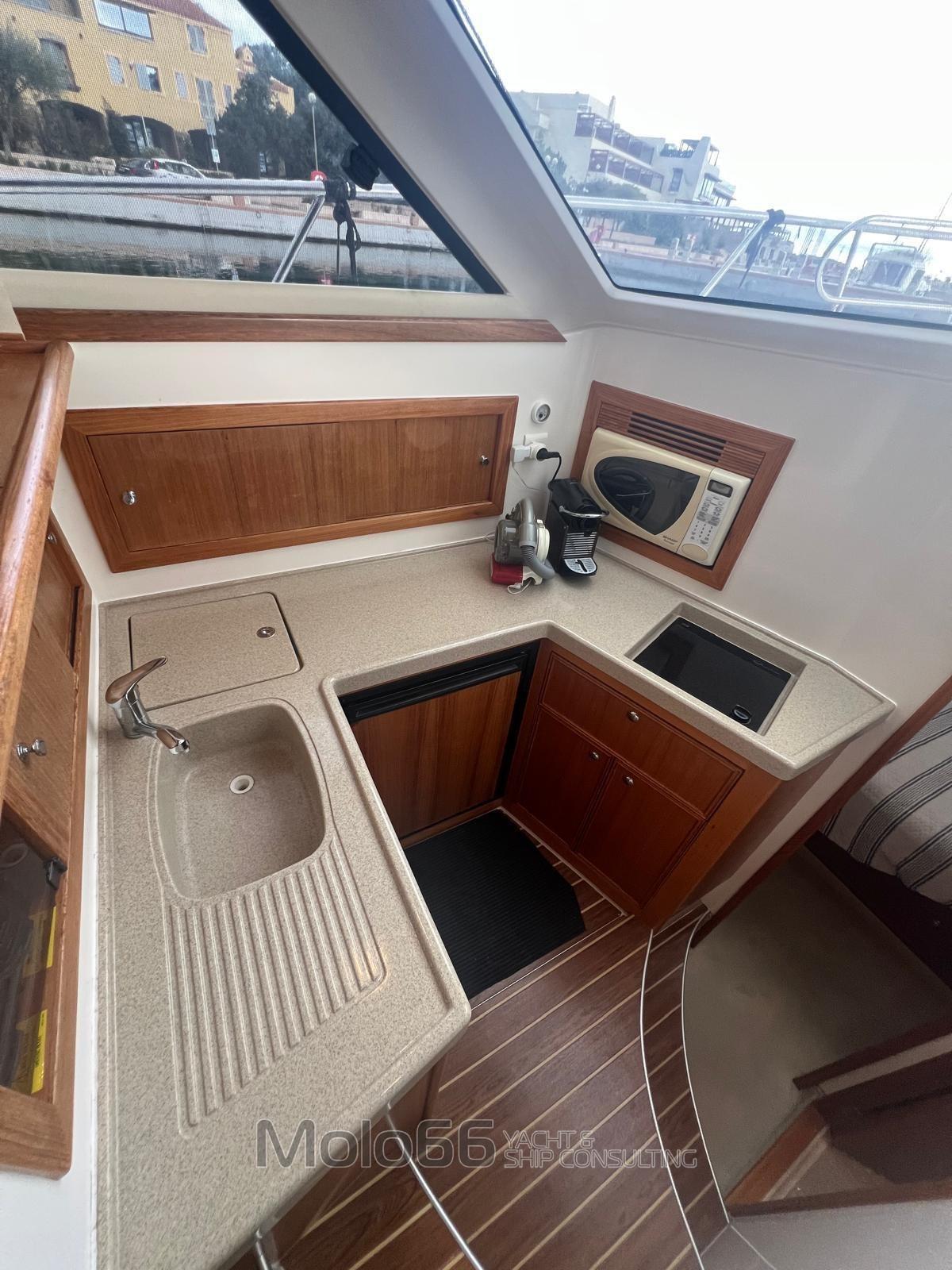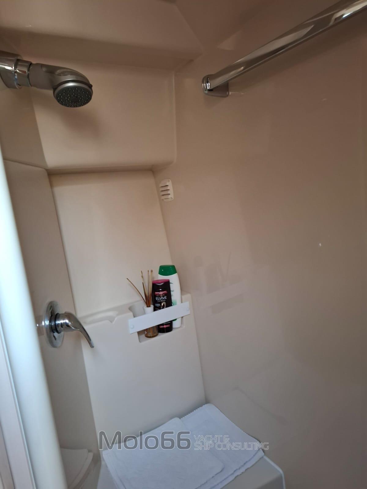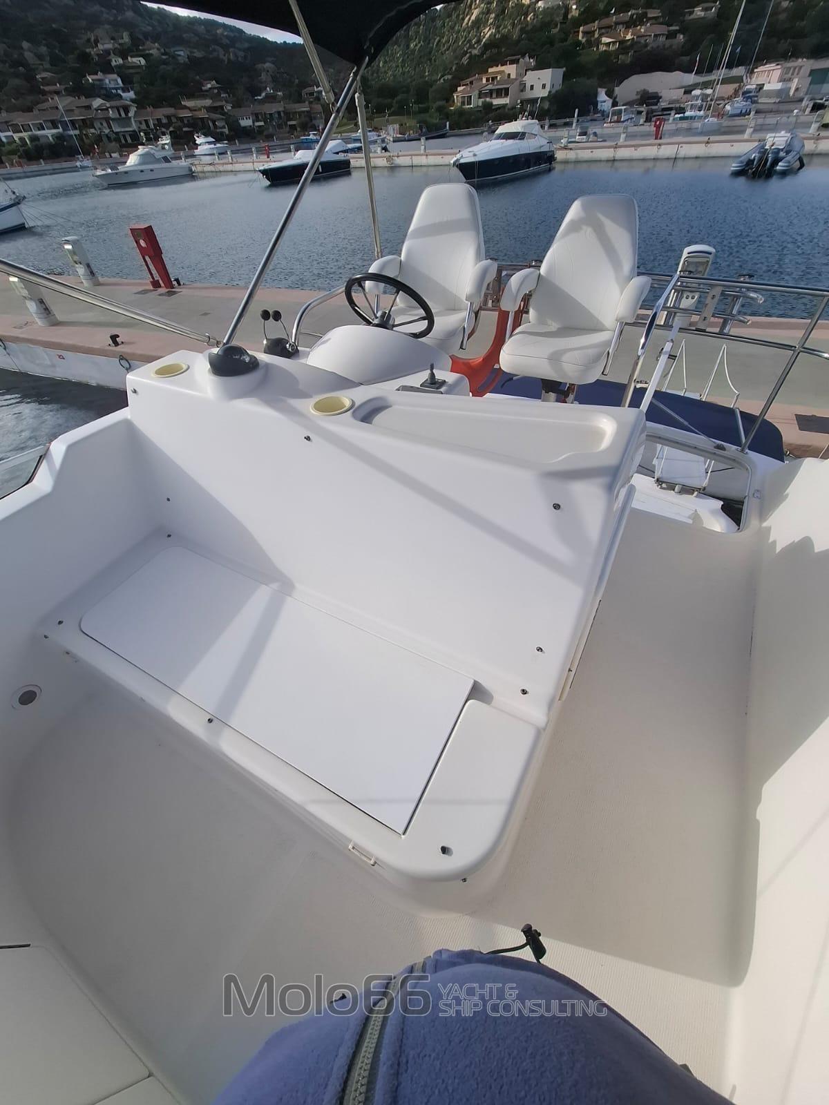 Allarme fumo/gas, Allarme motore, Allarme sentina, Autoclave, Doccia esterna, Doppia timoneria, Fari fissi a poppa, Faro orientabile, Flap elettrici, Impianto antincendio, Indicatori Flaps, Lavaggio catena, Lavandino nel Pozzetto, Luci di cortesia, Passerella, Piattaforma, Porta ingresso, Presa 220V banchina, Salpa Ancore Elettrico, Scaletta da bagno, Tavolo Salone Abbattibile, Tromba, Winch tonneggio di prua.
