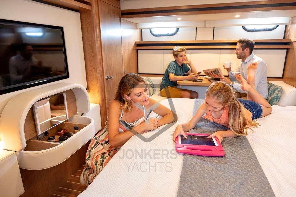 Il Grand Sturdy 500 AC Variotop® dispone di tre posti letto e di un ampio salone con due posti a sedere. Questo rende il 500 Variotop® un compagno di viaggio estremamente adatto e confortevole sia per brevi che per lunghe crociere sui fiumi o sul mare. Con tutti i comfort necessari a bordo come il sistema di climatizzazione, una cucina molto completa, bagni privati e servizi igienici separati, non ti mancherà il comfort a cui sei abituato a casa.
