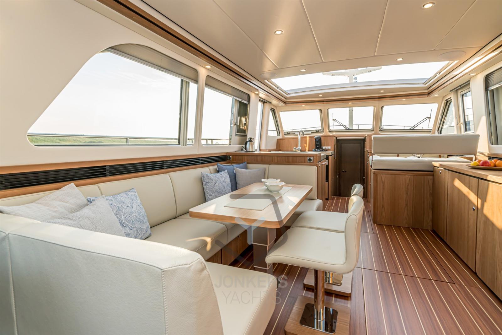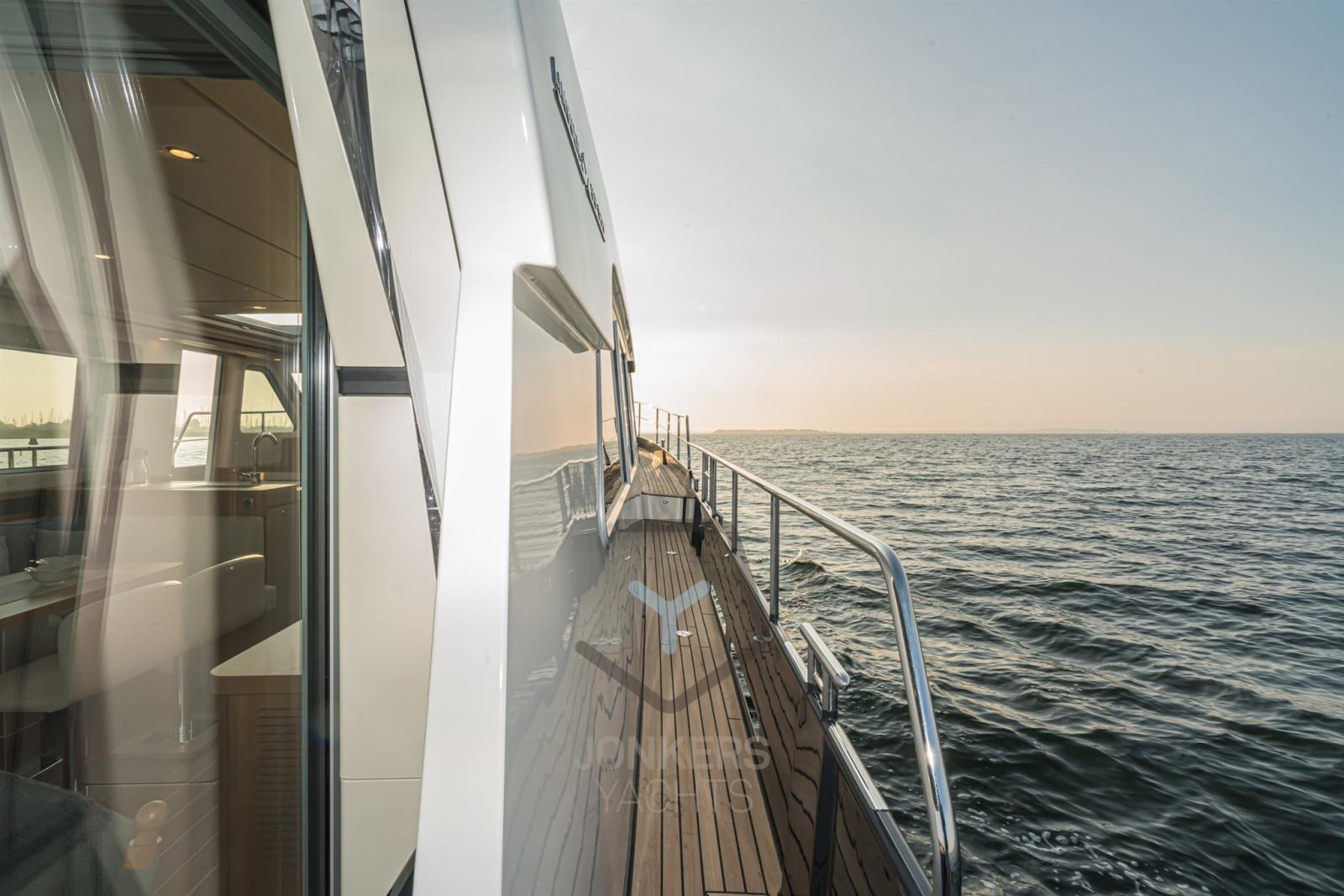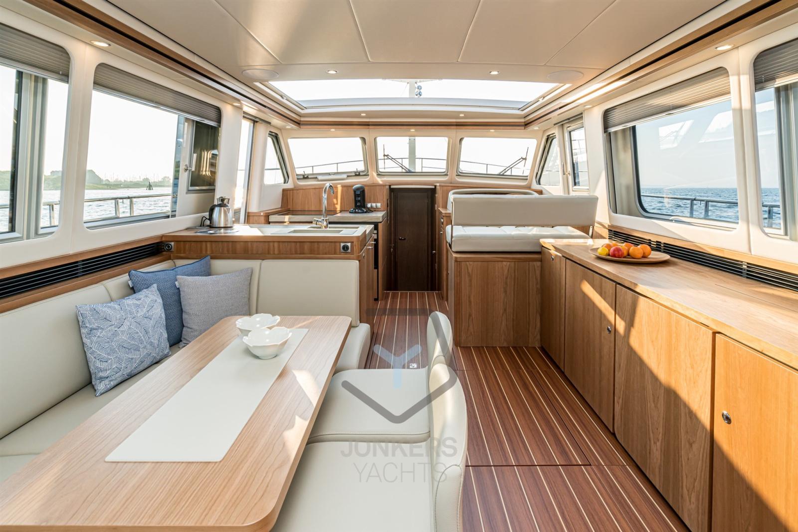 Con lo stesso spazio e un layout pratico, il Variodeck® è un'aggiunta gradita alla serie Grand Sturdy®. Il Variodeck® si distingue per la sua altezza di crociera limitata e per la sua ampia area del salone, che può essere facilmente ampliata utilizzando le porte a soffietto. Questo aggiunge lo spazioso ponte di poppa che include una grande piattaforma da bagno allo spazio abitativo a bordo della 500 Sedan Variodeck®.