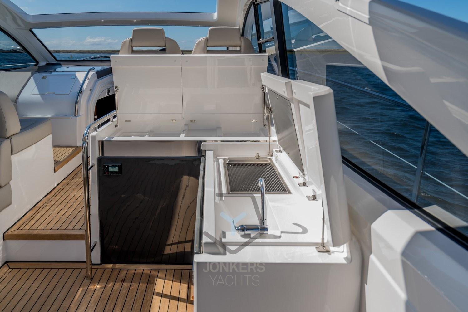 Puoi fare affidamento sul Targa 50 OPEN per raggiungere rapidamente la tua prossima destinazione, con le sue prestazioni e la sua manovrabilità impressionanti, il tutto grazie ai due motori Volvo IPS650 o IPS700. Ma c'è ancora di più da aspettarsi: la nostra opzione Premium Pack, con opzioni come l'aria condizionata ad alta capacità, una piattaforma da bagno sommergibile, un sistema audio Bluetooth, un display touchscreen da 12" sul volante e l'illuminazione ambientale esterna.