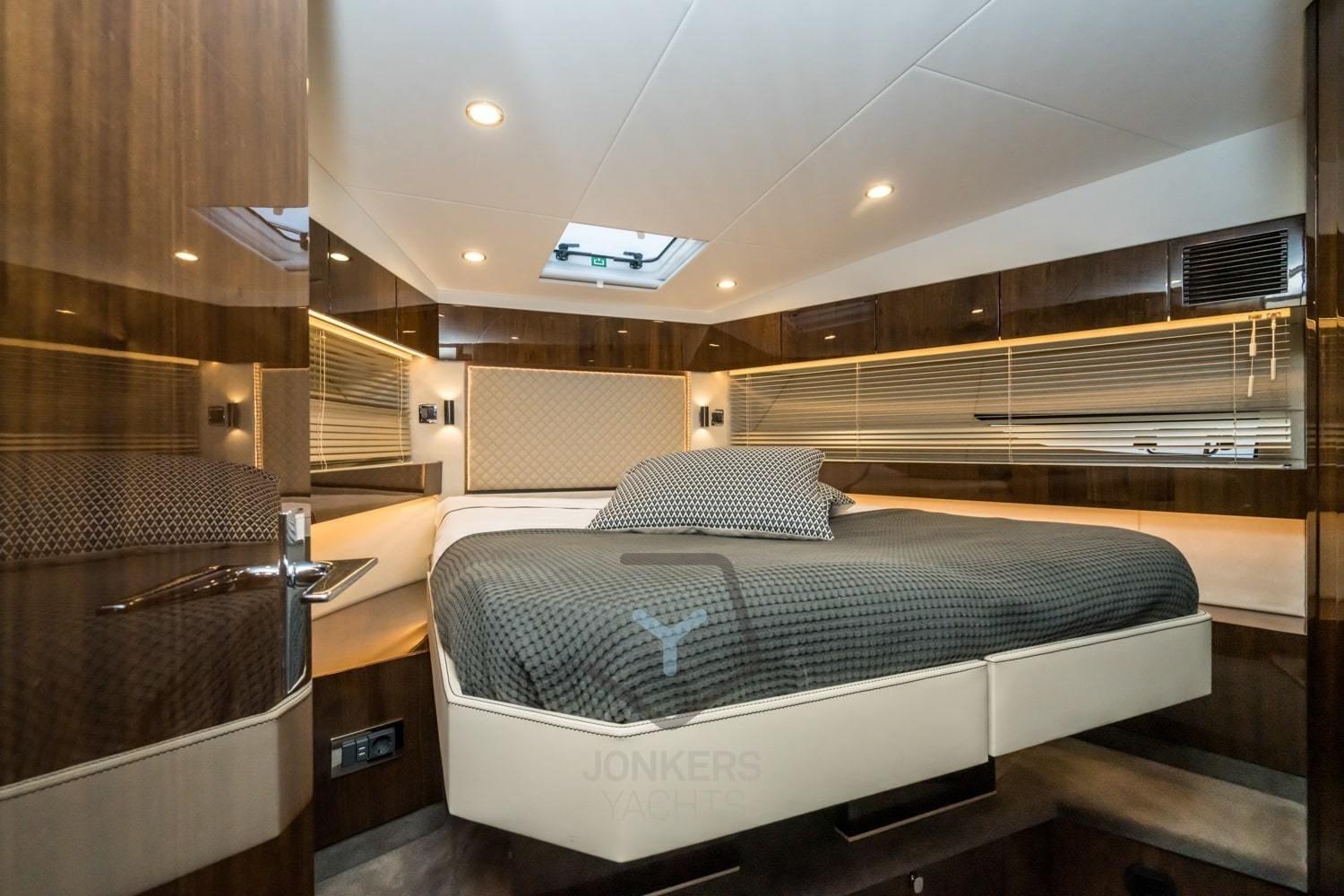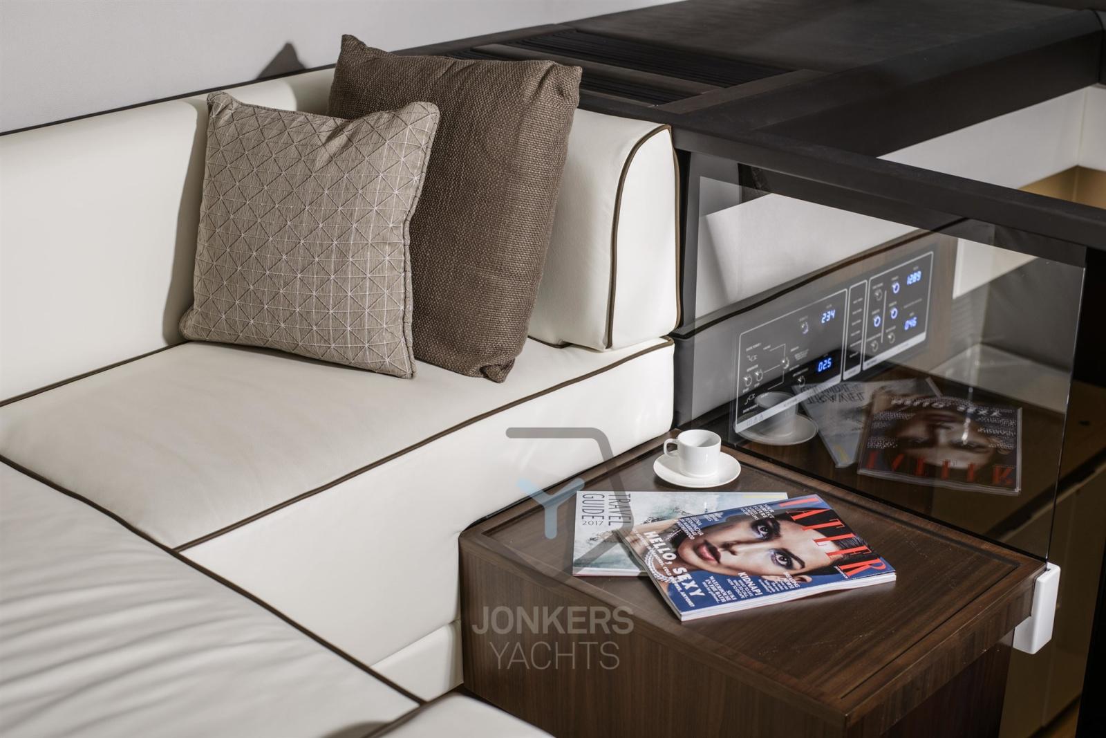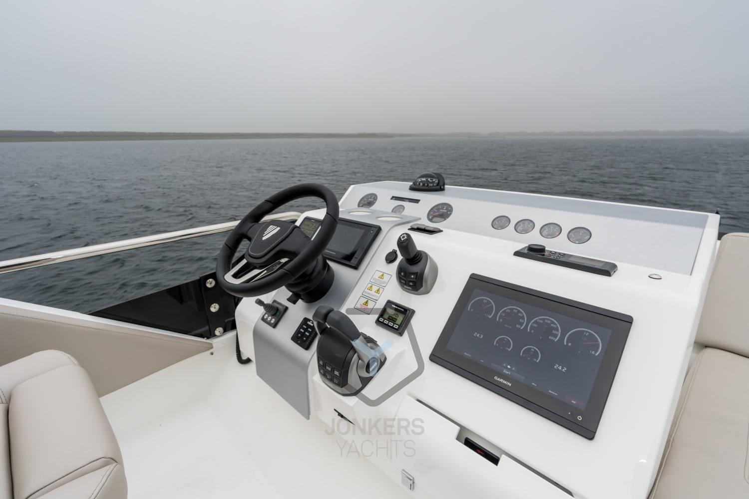 Navigare verso qualsiasi destinazione è ciò che lo Squadron 50 farà al tuo comando grazie ai due motori Volvo IPS nelle opzioni di motore 650 o 700. Ma c'è qualcosa di altrettanto eccitante a portata di mano. La prima opzione Premium Pack in assoluto con una serie di opzioni tra cui aria condizionata ad alta capacità, pavimenti in teak sul flybridge e una piattaforma da bagno tuffante. Questo yacht a motore è pronto a portarti in luoghi e a portarti lì con stile.