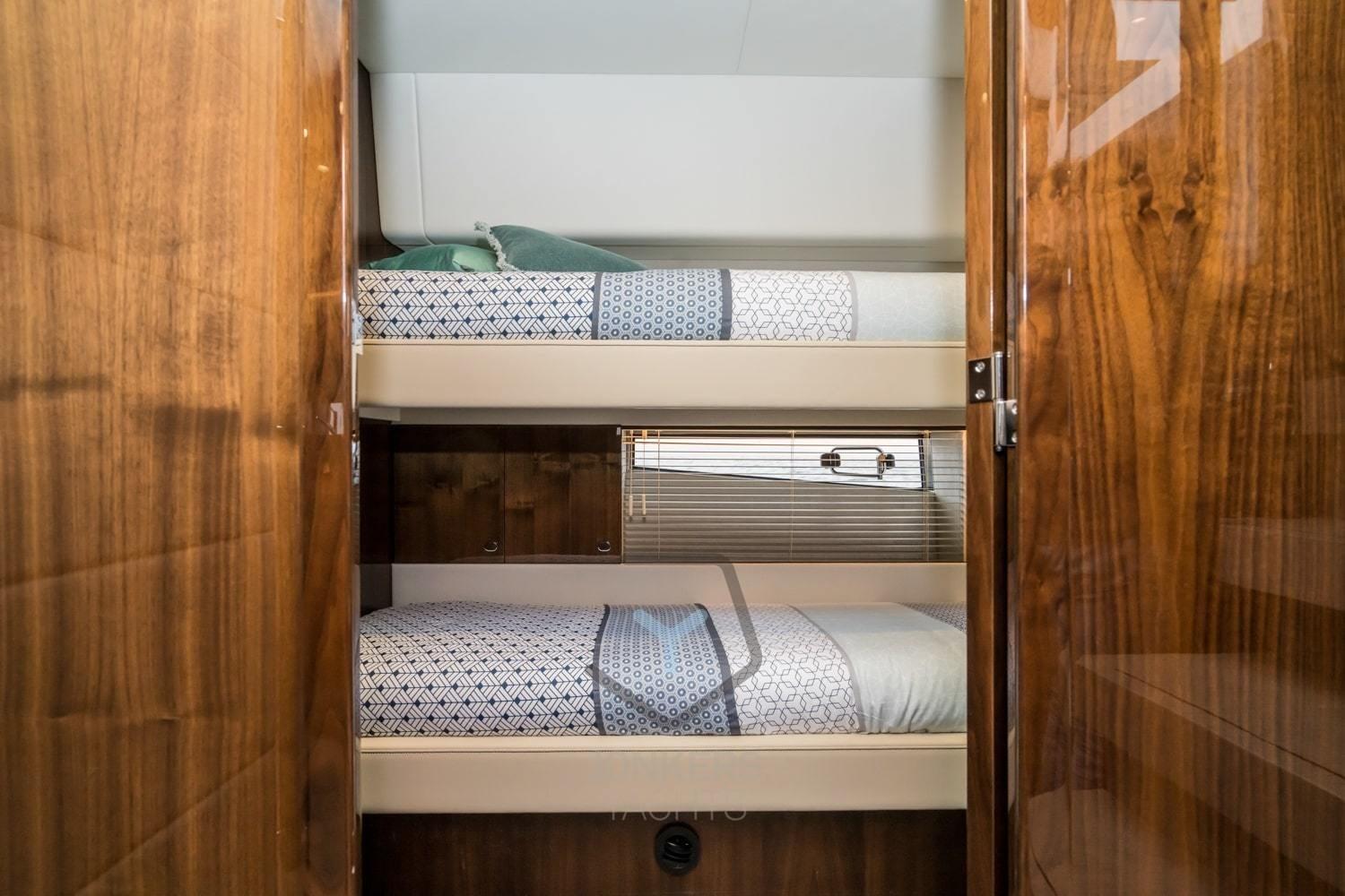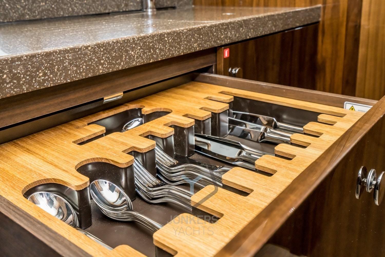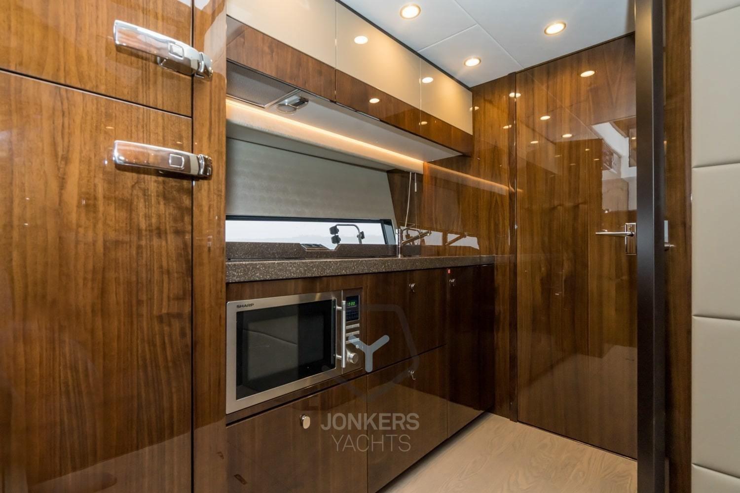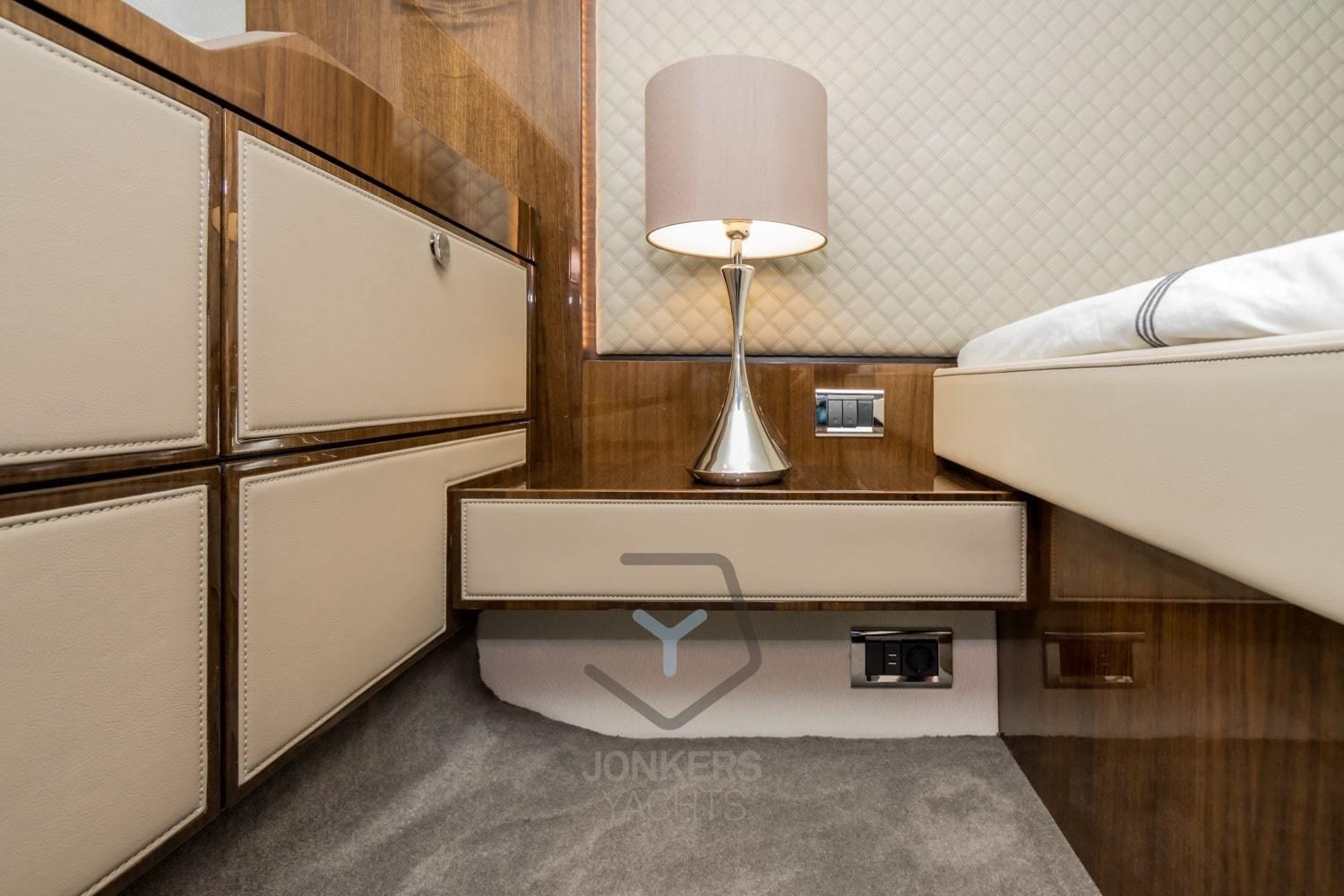 Navigare verso qualsiasi destinazione è ciò che lo Squadron 50 farà al tuo comando grazie ai due motori Volvo IPS nelle opzioni di motore 650 o 700. Ma c'è qualcosa di altrettanto eccitante a portata di mano. La prima opzione Premium Pack in assoluto con una serie di opzioni tra cui aria condizionata ad alta capacità, pavimenti in teak sul flybridge e una piattaforma da bagno tuffante. Questo yacht a motore è pronto a portarti in luoghi e a portarti lì con stile.