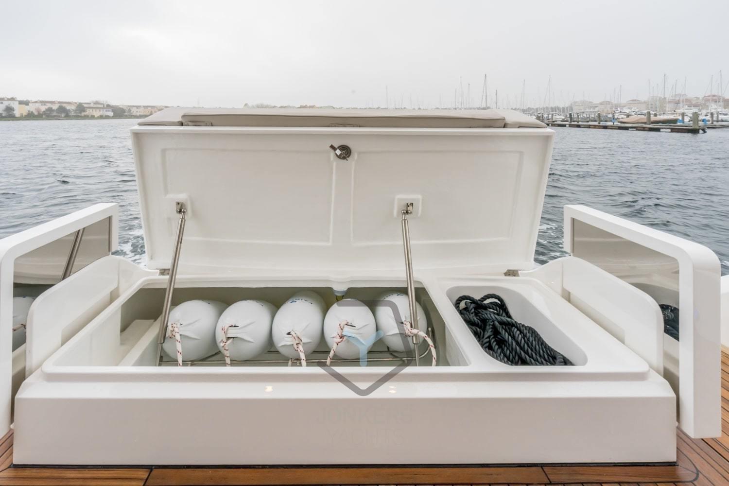 Autoclave, Doccia esterna, Doppia timoneria, Gruette, Piattaforma, Pompa di sentina automatica, Raddrizzatore, Salpa Ancore Elettrico, Scaletta da bagno.