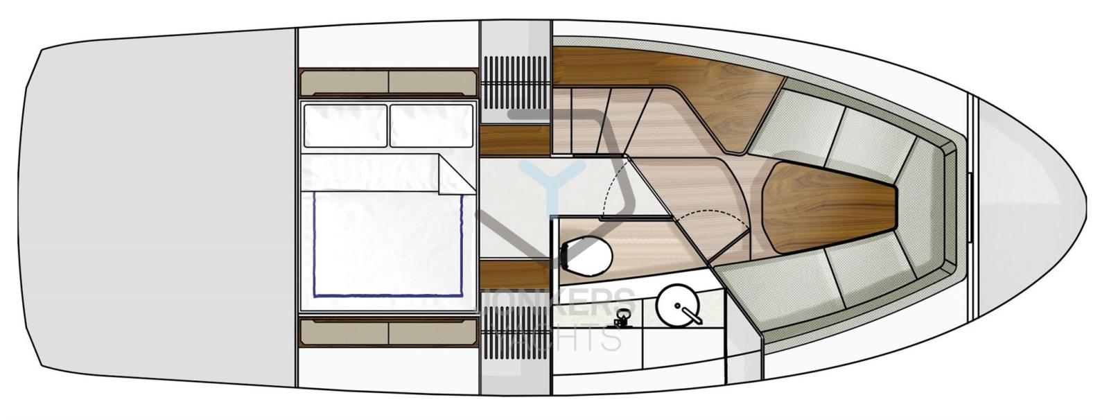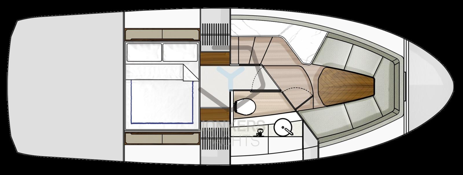 La bellezza del fuoribordo F//LINE 33 risiede nella sua adattabilità. Lo spazio generoso consente ai tuoi ospiti di distendersi in tutta comodità. L'eccellente manovrabilità a bassa velocità rende la maneggevolezza senza complicazioni. E poiché i potenti motori gemelli Mercury Verado sono a portata di mano, la manutenzione è più semplice.