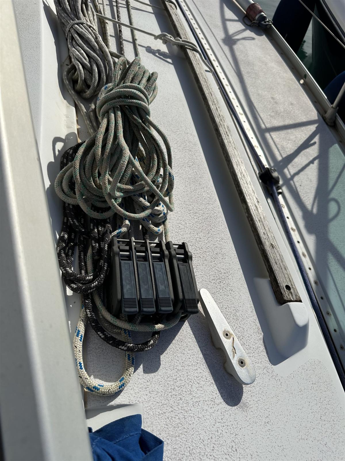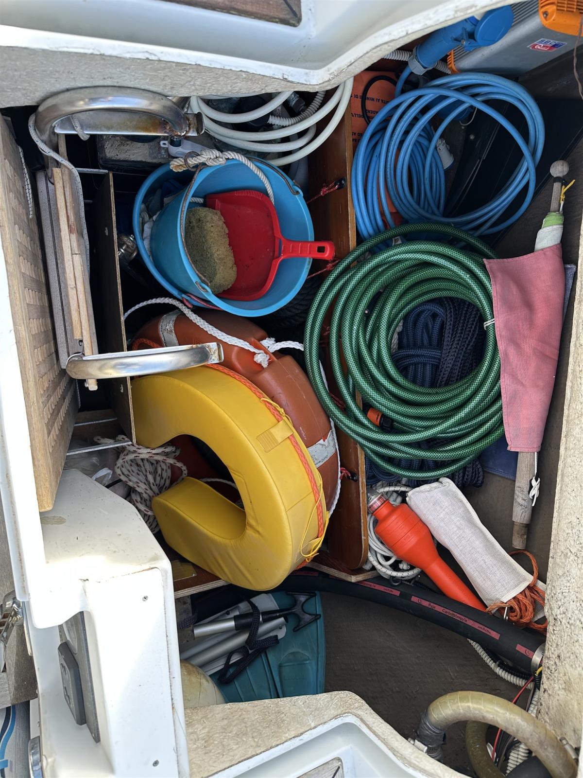 Allarme motore, Ancora (CQR), Autoclave, Autogonfiabile (Da revisionare 8 pax), 3 Batterie (2 nuove 1 funziona vecchia), Cavo corrente di banchina, Doccia esterna, Motore ausiliario (HONDA 2 va tagliandato), 2 Pannelli Solari (SOLBIAN), 8 Parabordi (Compreso 2 a palla), Passerella, Piattaforma, Pompa di sentina manuale, Pozzetto Teak (CON CARABOTTINO), Presa 220V banchina, Raddrizzatore, Salpa Ancore Elettrico, Sartiame spiroidale (RIFATTO 2018), Scaletta da bagno, Supporto motore fuoribordo, Tender (ZODIAC), 5 Winch (2 PRIMARI, 2 X DRIZZE , 1 ALL’ALBERO).