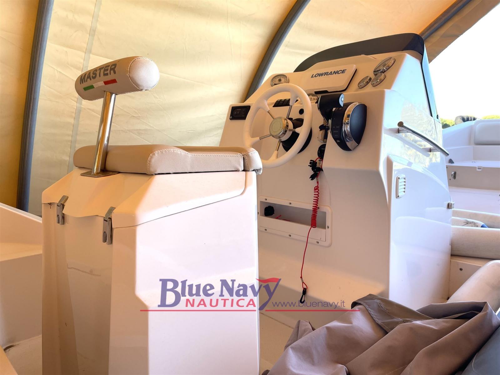 Proponiamo in vendita gommone Master 699 motorizzato con il motore fuoribordo Mercury 200cv V6 tutto del 2021, ore navigazione ca 150; equipaggiato con Rollbar + tendalino, doccetta, GPS, salpa ancora elettrico, cuscineria competa, copriconsol, scaletta di risalita, ecc. Motore sempre tagliandato presso officina Mercury autorizzata, in garanzia Mercury fino a 2026. in vendita SENZA carrello.