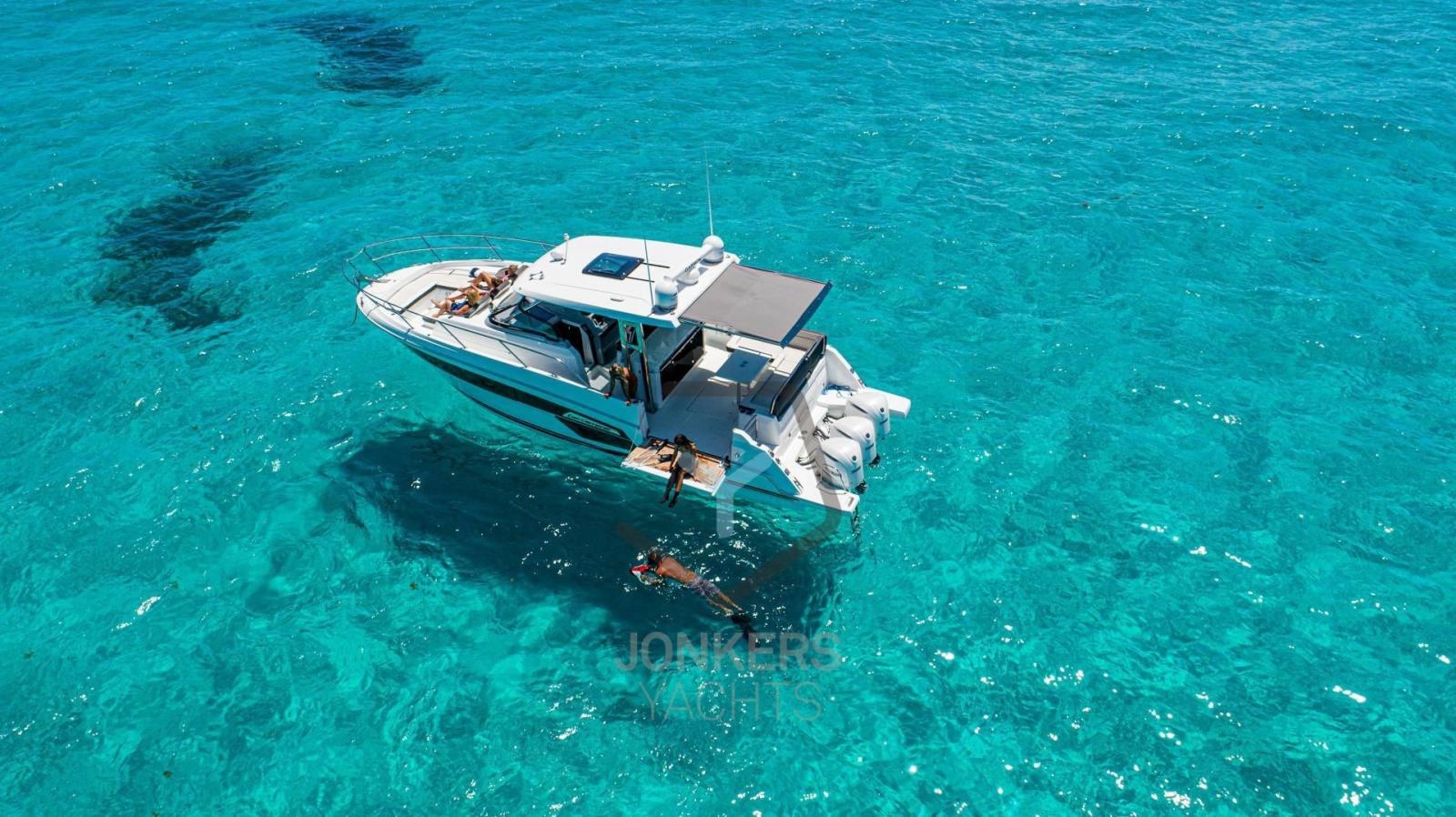Con una potenza massima di 900 CV (2 x 450 CV o 3 x 300 CV) e uno scafo aerodinamico a forma di V progettato da Michael Peters, uno dei massimi specialisti del mondo, le sue prestazioni soddisfano tutte le aspettative. Le prime prove in mare confermano le elevate prestazioni e il notevole comfort di navigazione.