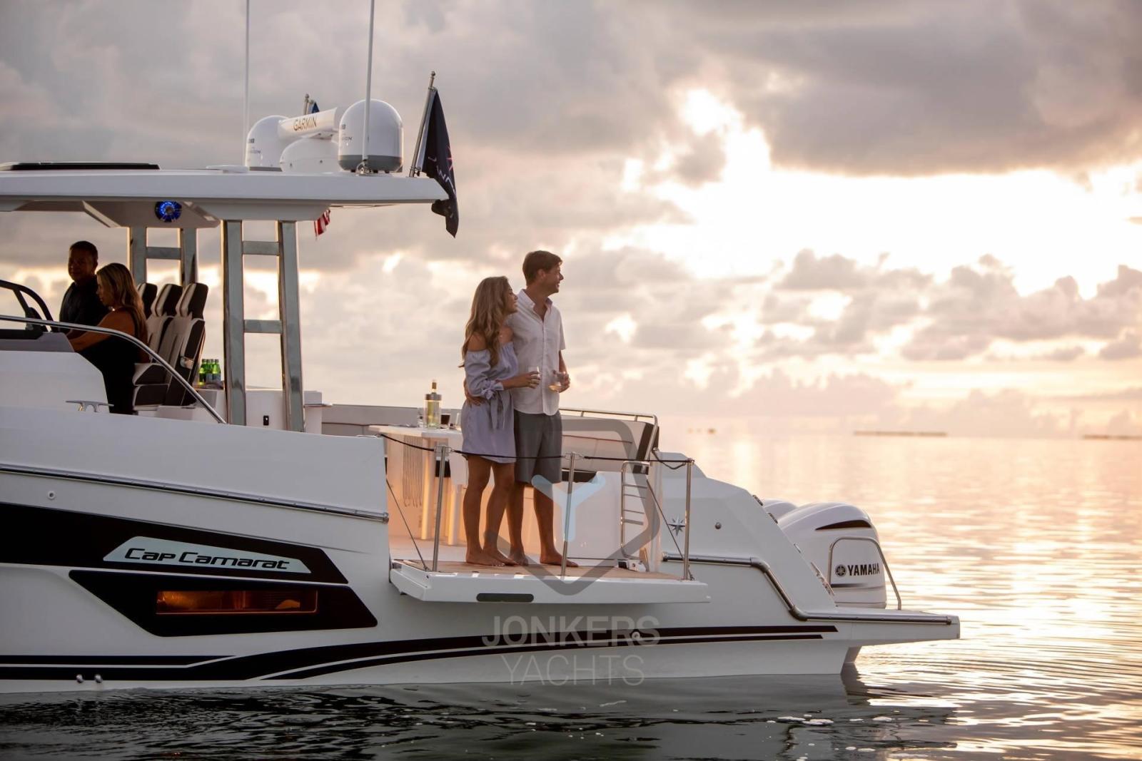 Nello spirito di Cap Camarat, gli spazi abitativi perfettamente equilibrati incorporano una serie di importanti innovazioni. Il salone di prua con sedute contrapposte offre un eccezionale spazio abitativo aggiuntivo. La terrazza del pozzetto è uno spazio abitativo eccezionale all'ancora. La cucina da esterno con molteplici configurazioni diventa il punto focale a bordo.