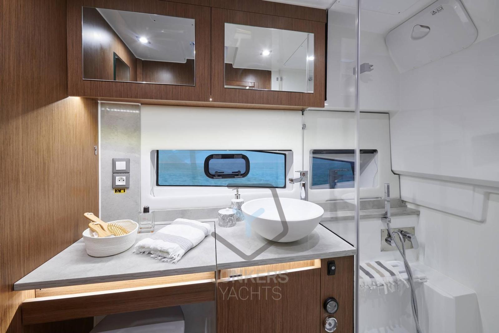 Il lusso dello spazio e i materiali scelti esaltano lo spirito di Cap Camarat. La cabina di poppa a tutta larghezza, con il suo letto king-size e il bagno con doccia separato, contribuisce all'eccezionale comfort a bordo. Infine, le grandi vetrate sul mare aprono lo spazio abitativo al rovescio.