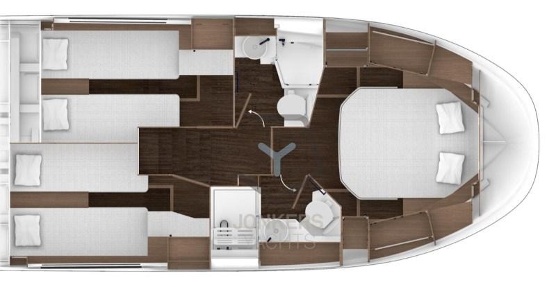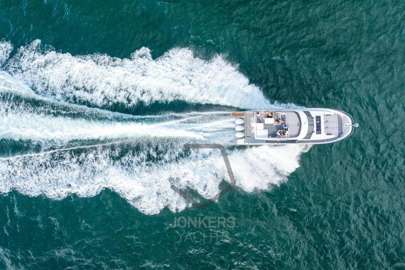 Ampie e luminose vetrate e vista panoramica sull'acqua, la vita a bordo di questa ammiraglia è dolce, impreziosita da una selezione di materiali raffinata e contemporanea. Accomodatevi al timone e approfittate delle ultime tecnologie, presenti sulle barche più grandi, per un facile utilizzo. La porta laterale di dritta offre un facile accesso e facilita le manovre per una crociera senza preoccupazioni. Salpa e trova il tuo posto comodo in una delle tre cabine, per un momento di riposo in acqua ad ogni fermata durante la tua crociera!