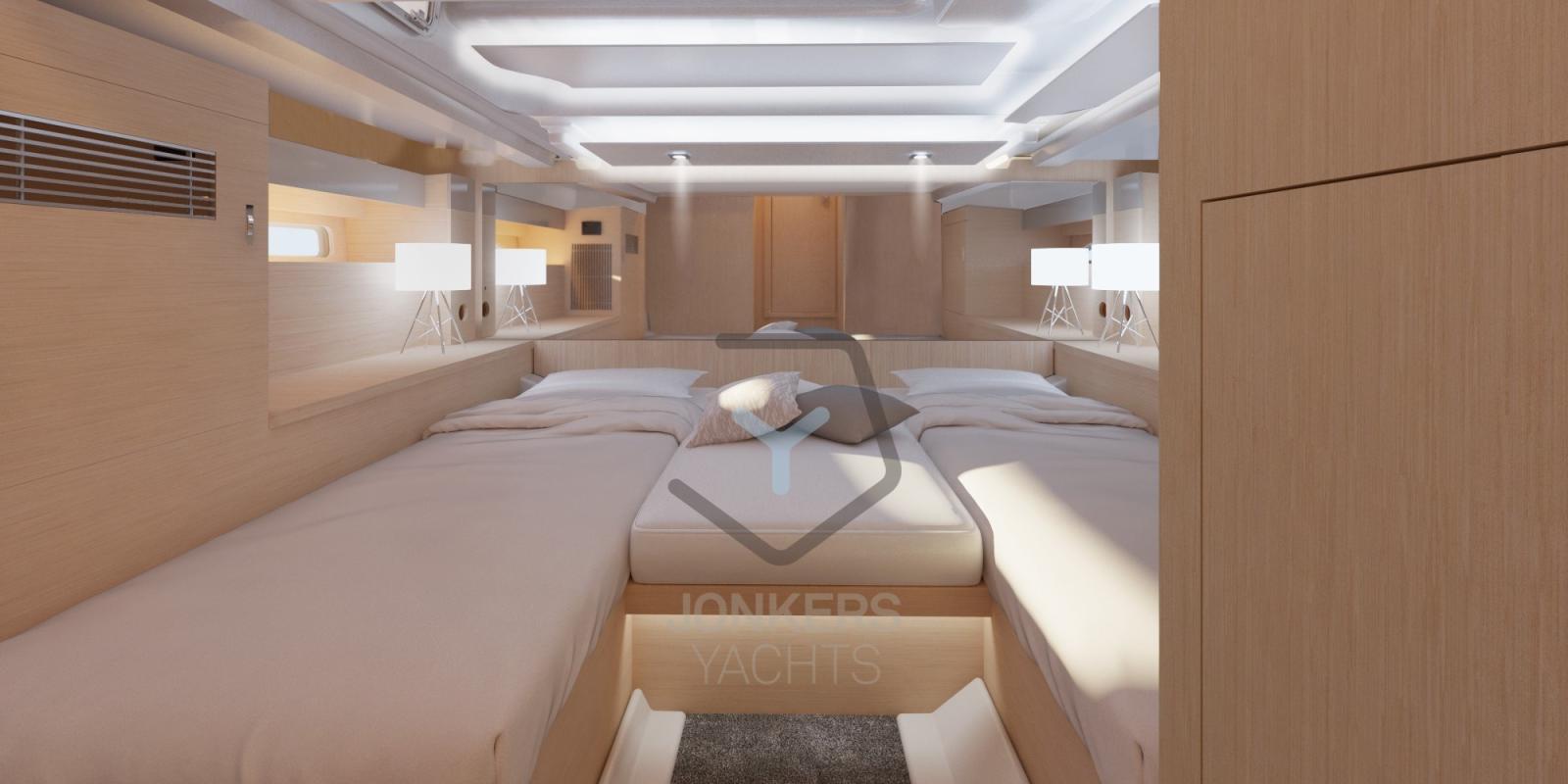 Il DB/37 OB offre uno spazio eccezionale a bordo. Quando si è all'ancora, i ponti laterali possono essere utilizzati per creare ancora più spazio per muoversi. L'ampia piattaforma da bagno di poppa offre un facile accesso al mare. Goditi gli splendidi tramonti con gli ospiti mentre ti godi la cena nel pozzetto. Passare la notte a bordo non è un problema. Le due cabine, comode e spaziose, ospitano quattro persone.