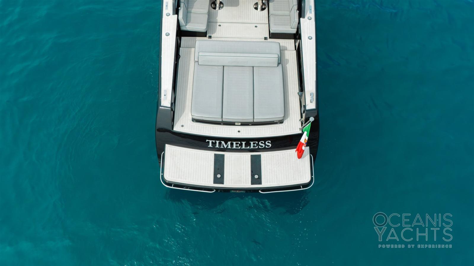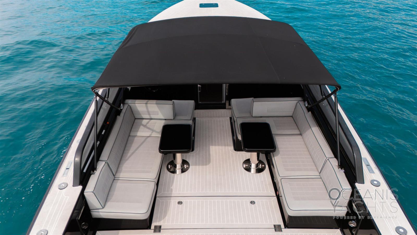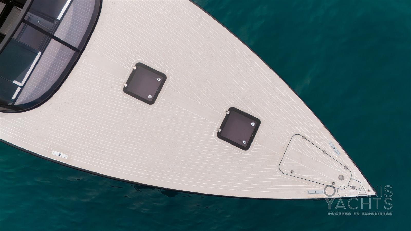 Allarme motore, Doccia esterna, Flap elettrici, Luci di cortesia, Luci subacquee, Presa 220V banchina, Scaletta da bagno, Tavolo pozzetto, Tromba.